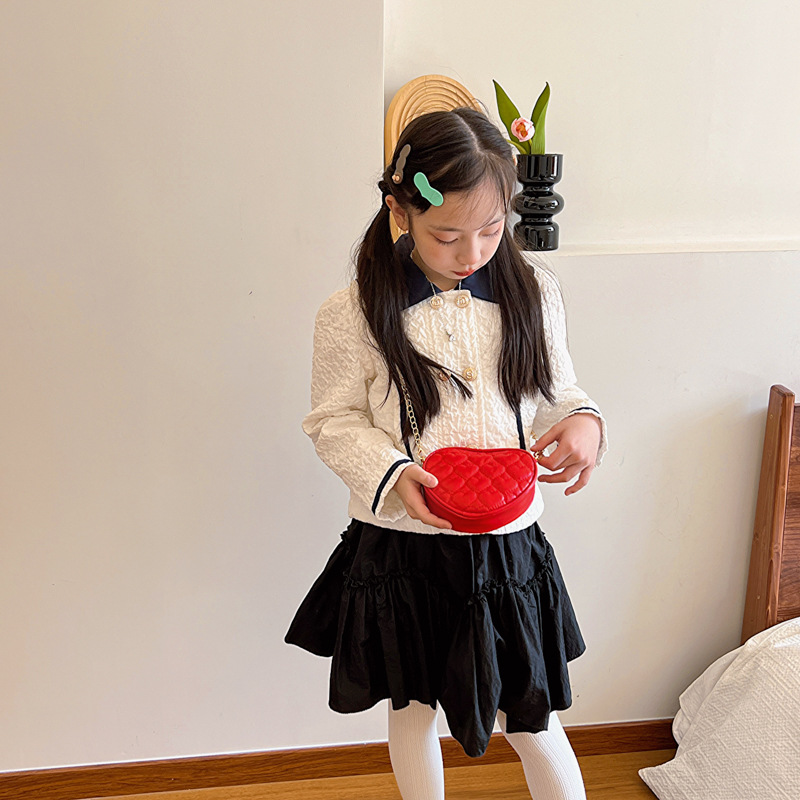 Korean Style Men's and Women's Shoulder Bag Fashionable Diamond Embroidery Line Cute Heart Shaped Children's Crossbody Bag New Solid Color Children's Bag