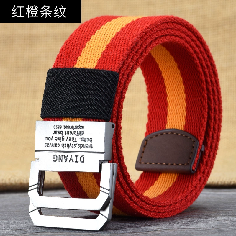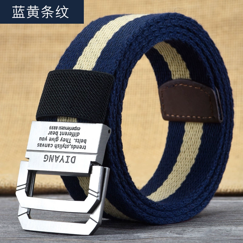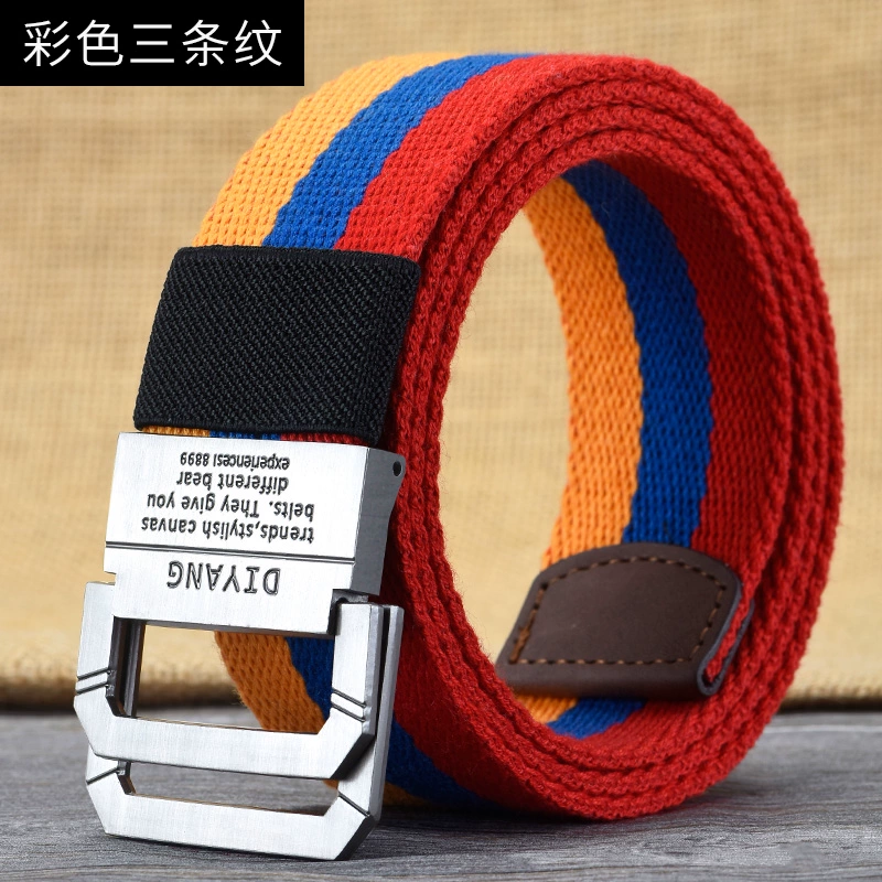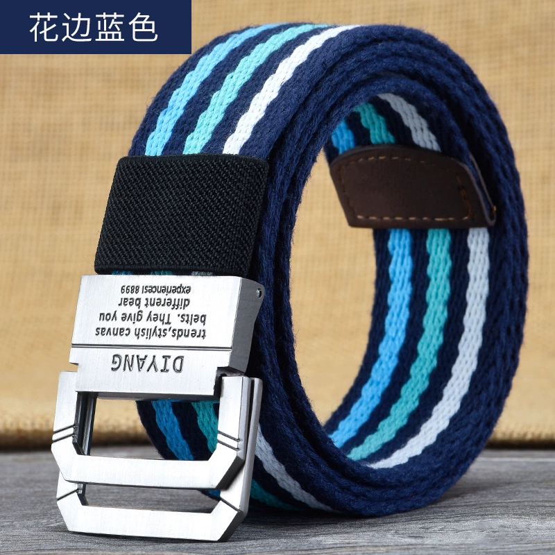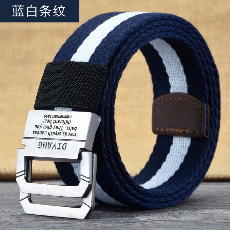 Korean version of men’s canvas belt belt women’s versatile double-loop buckle jeans belt student casual trend ins extension