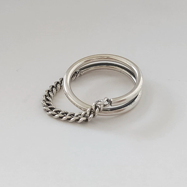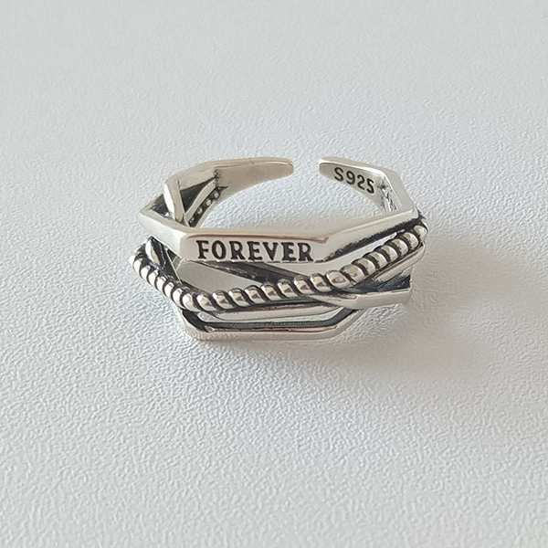 Korean version of the line multi -layer entangled female retro letter ring