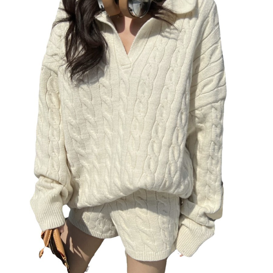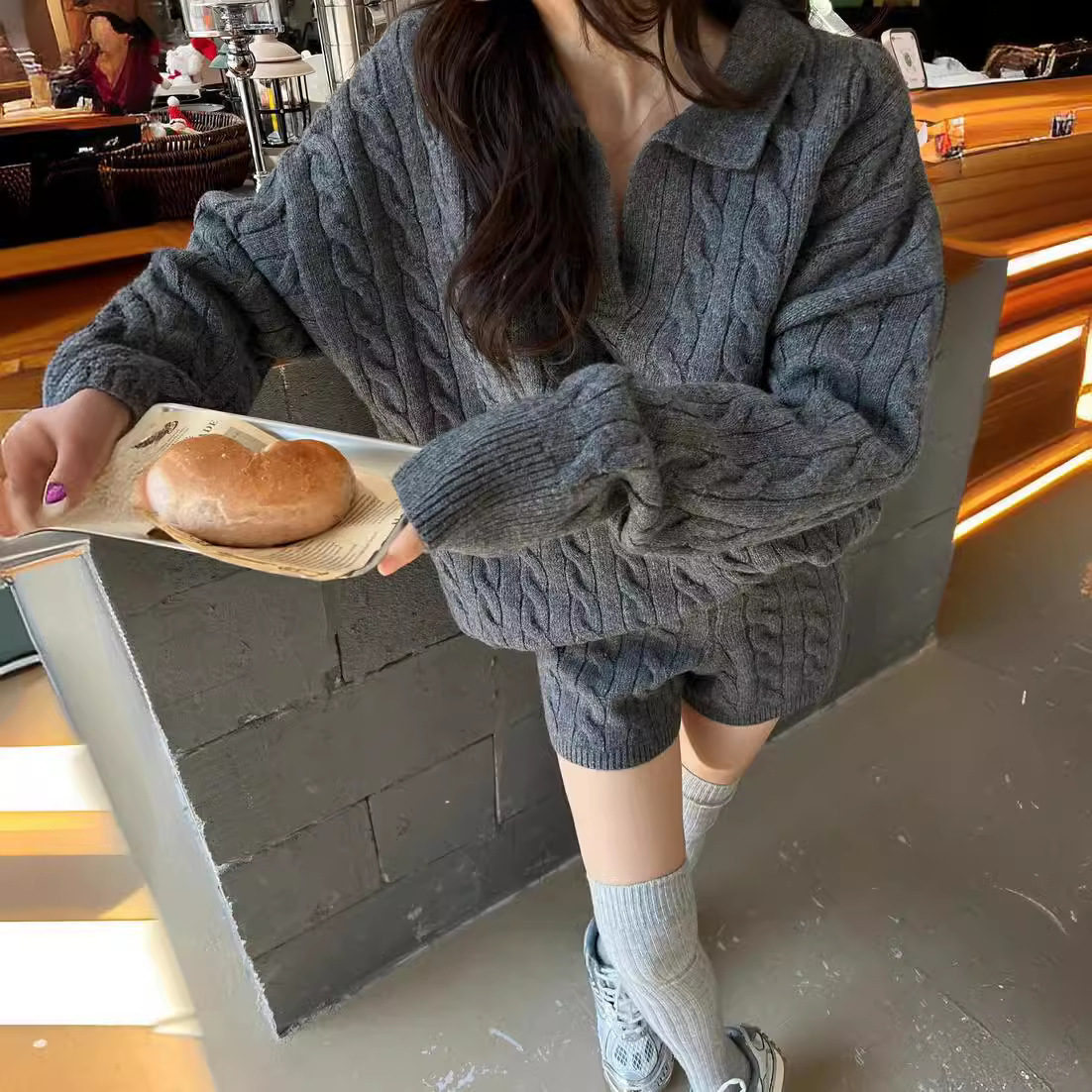| nameOriginal | Korean Style New Autumn and Winter Elegant Two-piece Set Polo Collar Twist Soft Waxy Top Knitted Sweater Shorts Trendy suit |