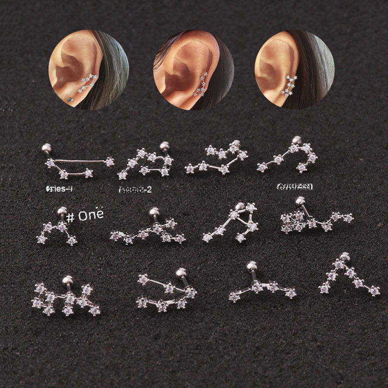 | nameOriginal | Korean style new fashion zircon twelve Constellation ear bone nail stainless steel twist ball ear studs foreign trade piercing ear jewelry |