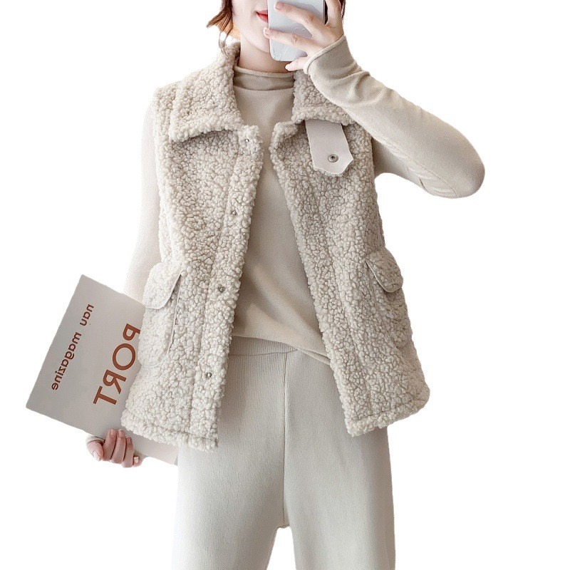| nameOriginal | Korean style new lamb plush vest female 2023 workwear style lapel buckle lamb wool vest female loose |