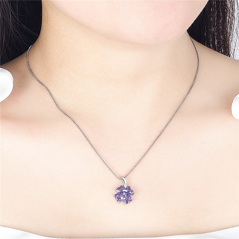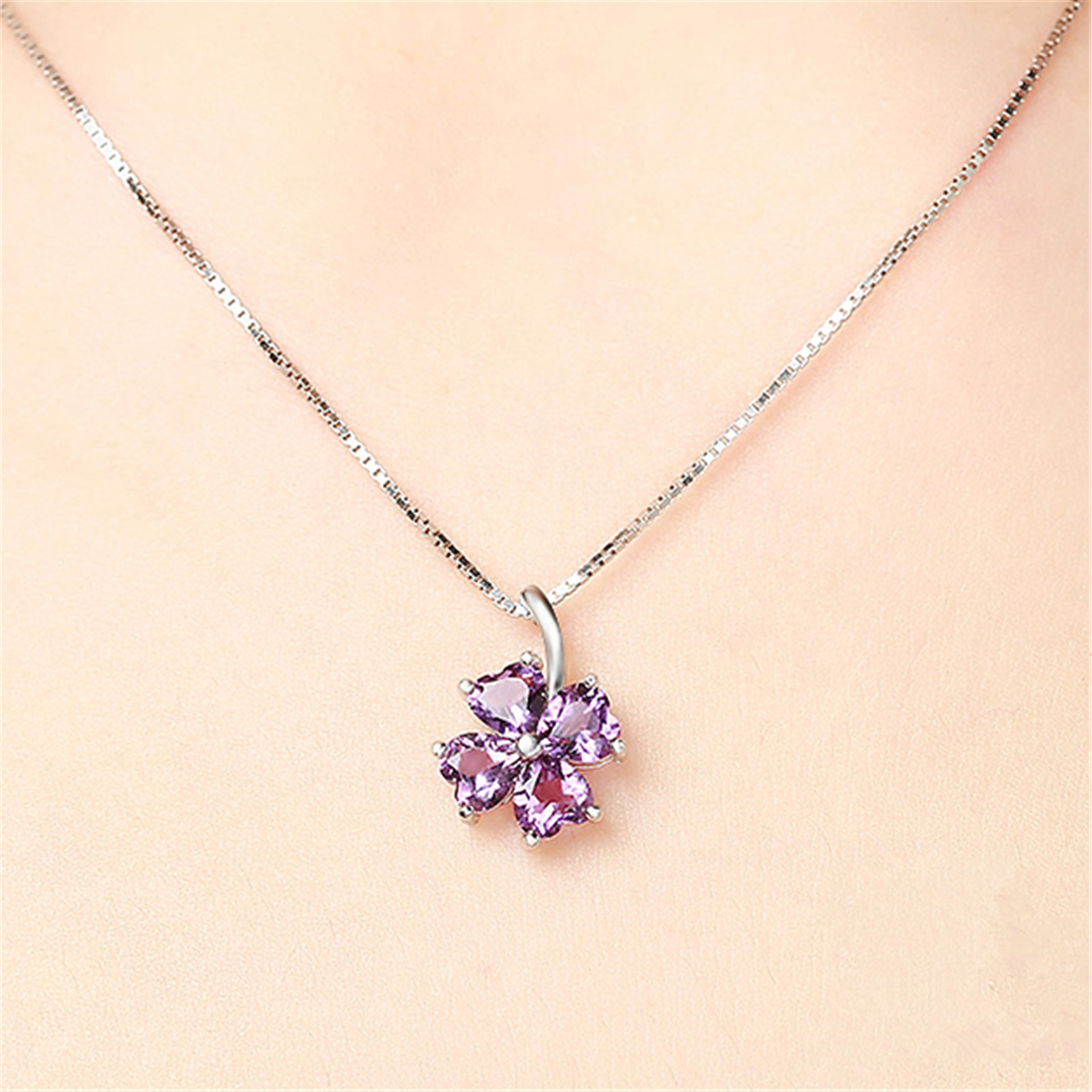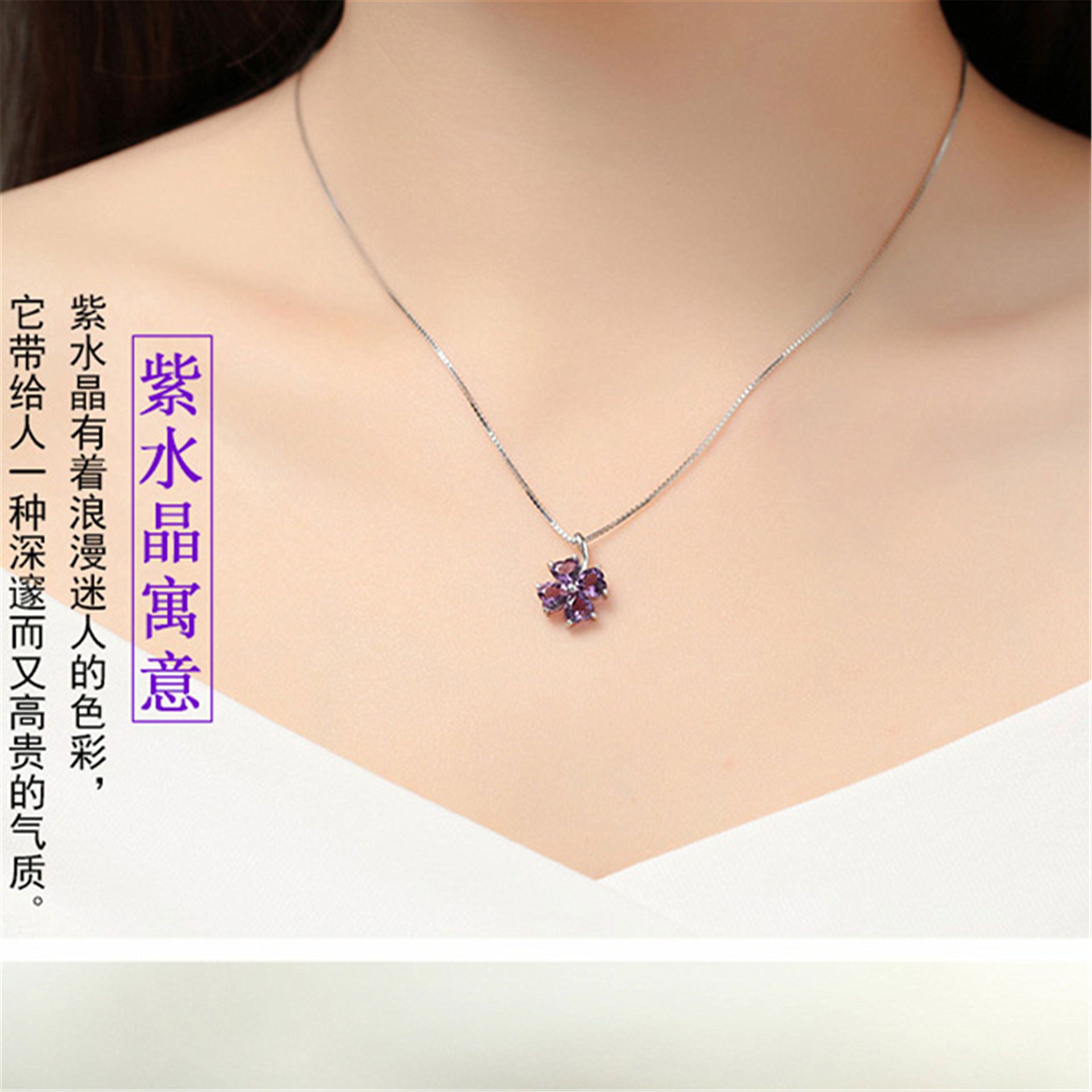 | nameOriginal | Korean style new silver women's clavicle chain simple amethyst clover necklace pendant for girlfriend Qixi gift |