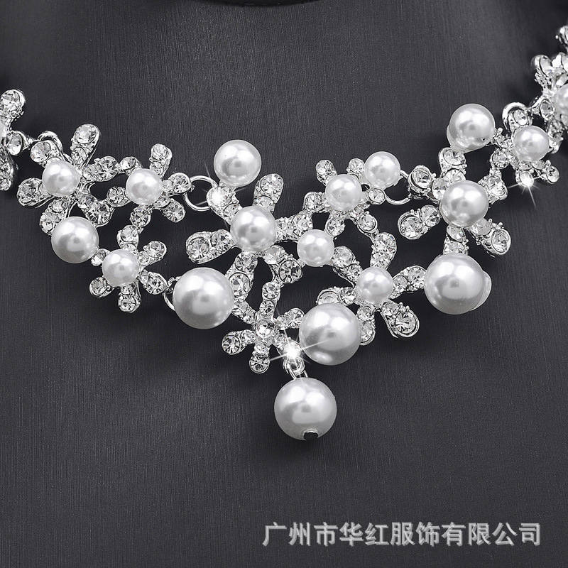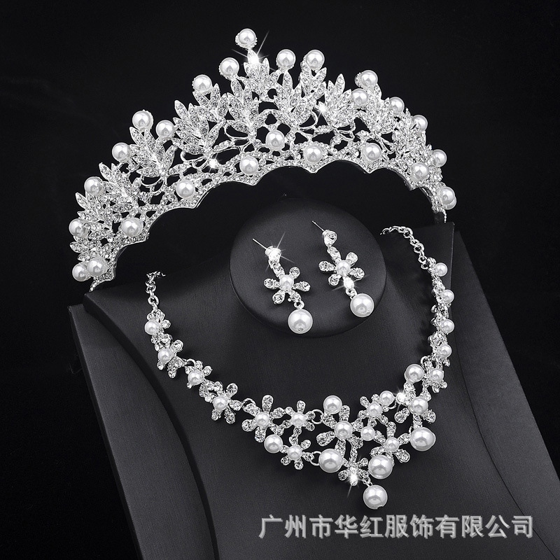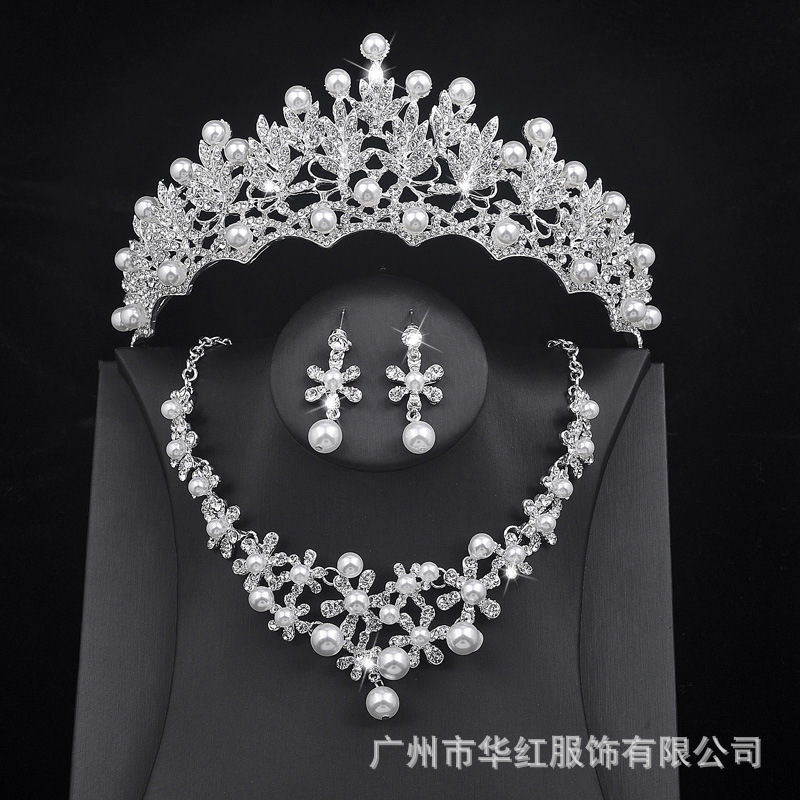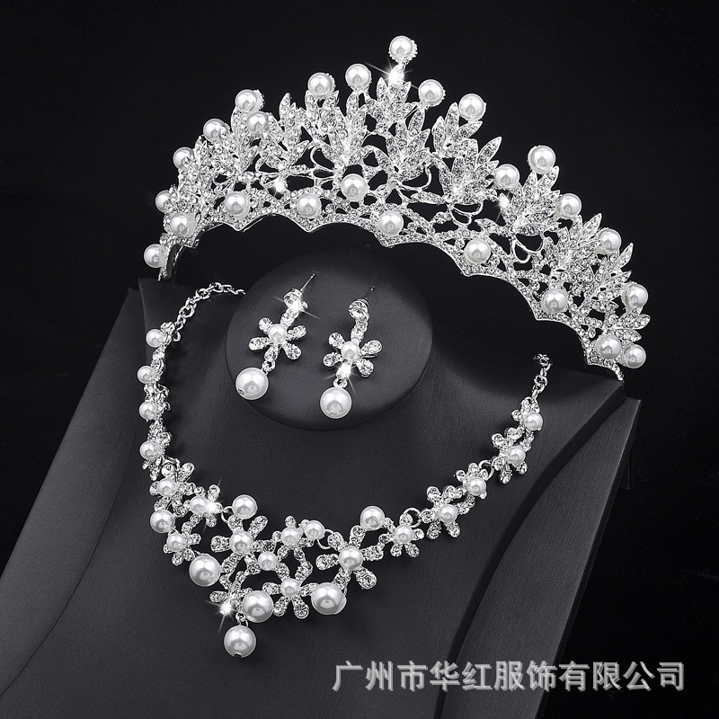 Korean Style Pearl Crown Necklace Earrings Set Princess Jewelry Three-Piece Set Wedding Live Performance Jewelry Set