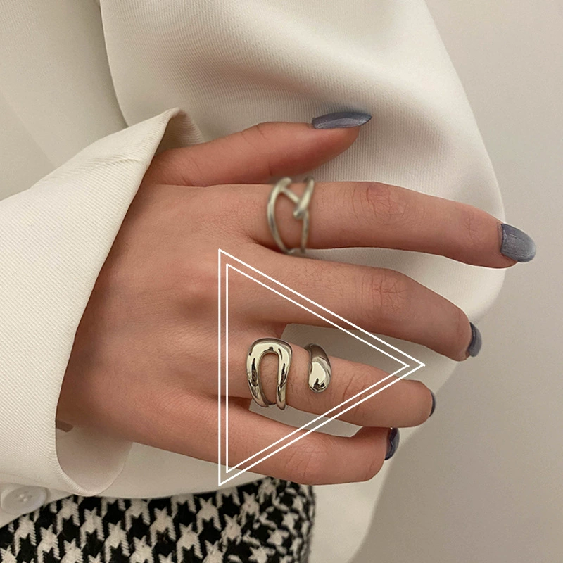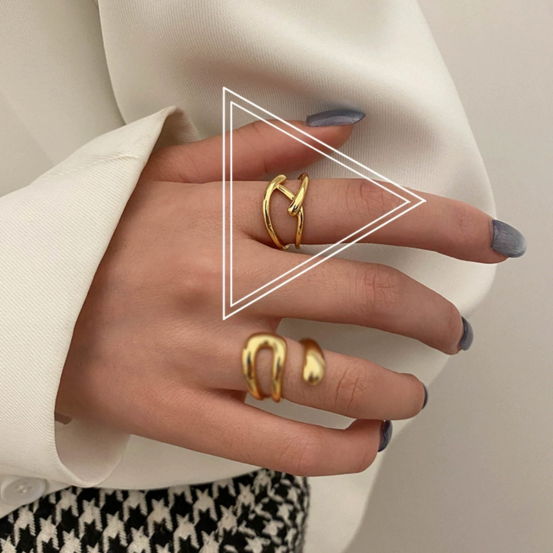 | nameOriginal | Korean style personalized cross braided sterling silver ring for girls, temperament, golden texture, trendy hip-hop open ring jewelry |