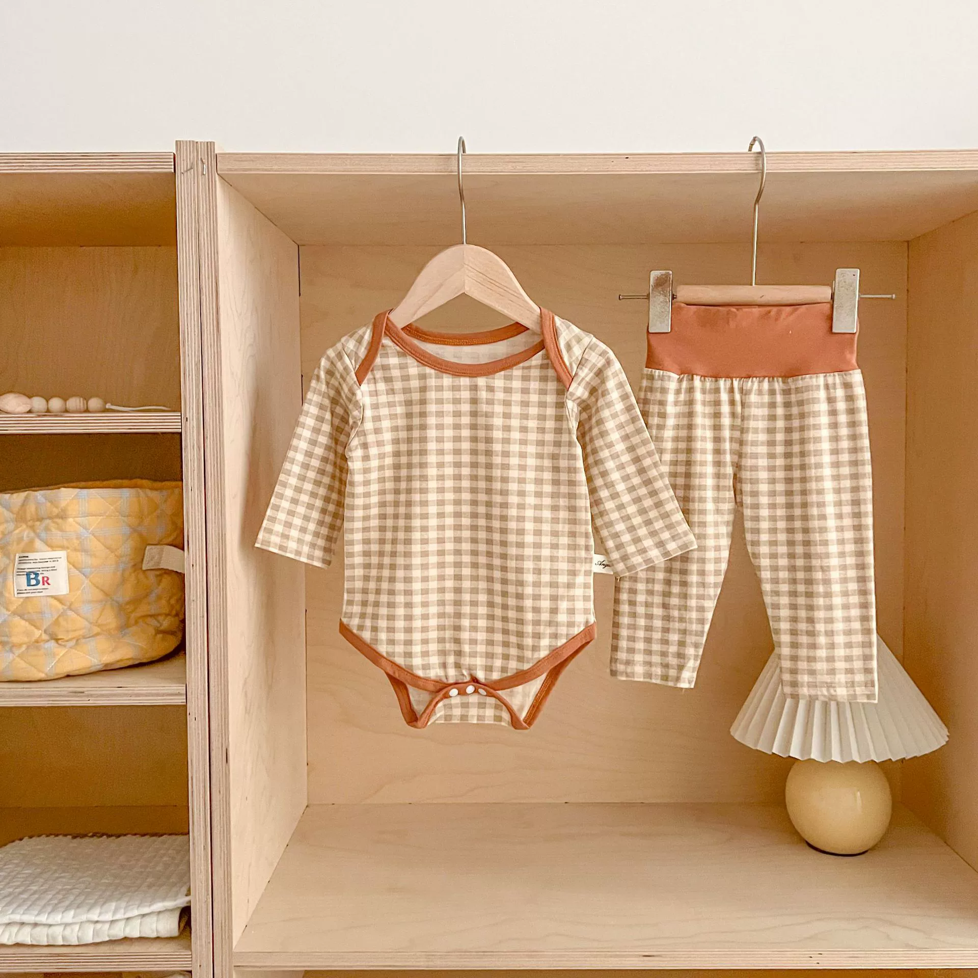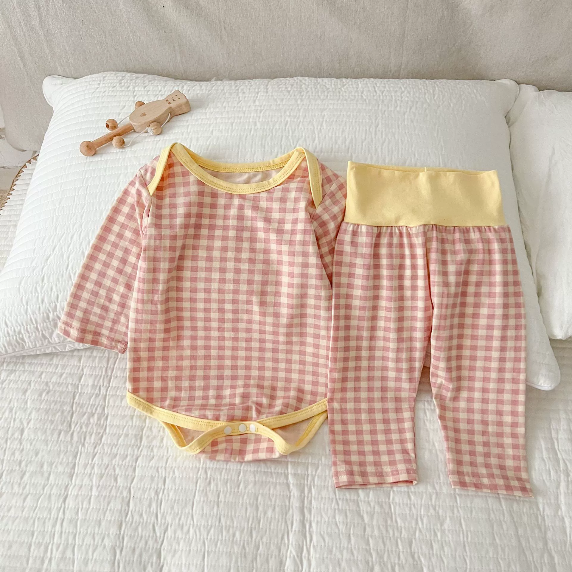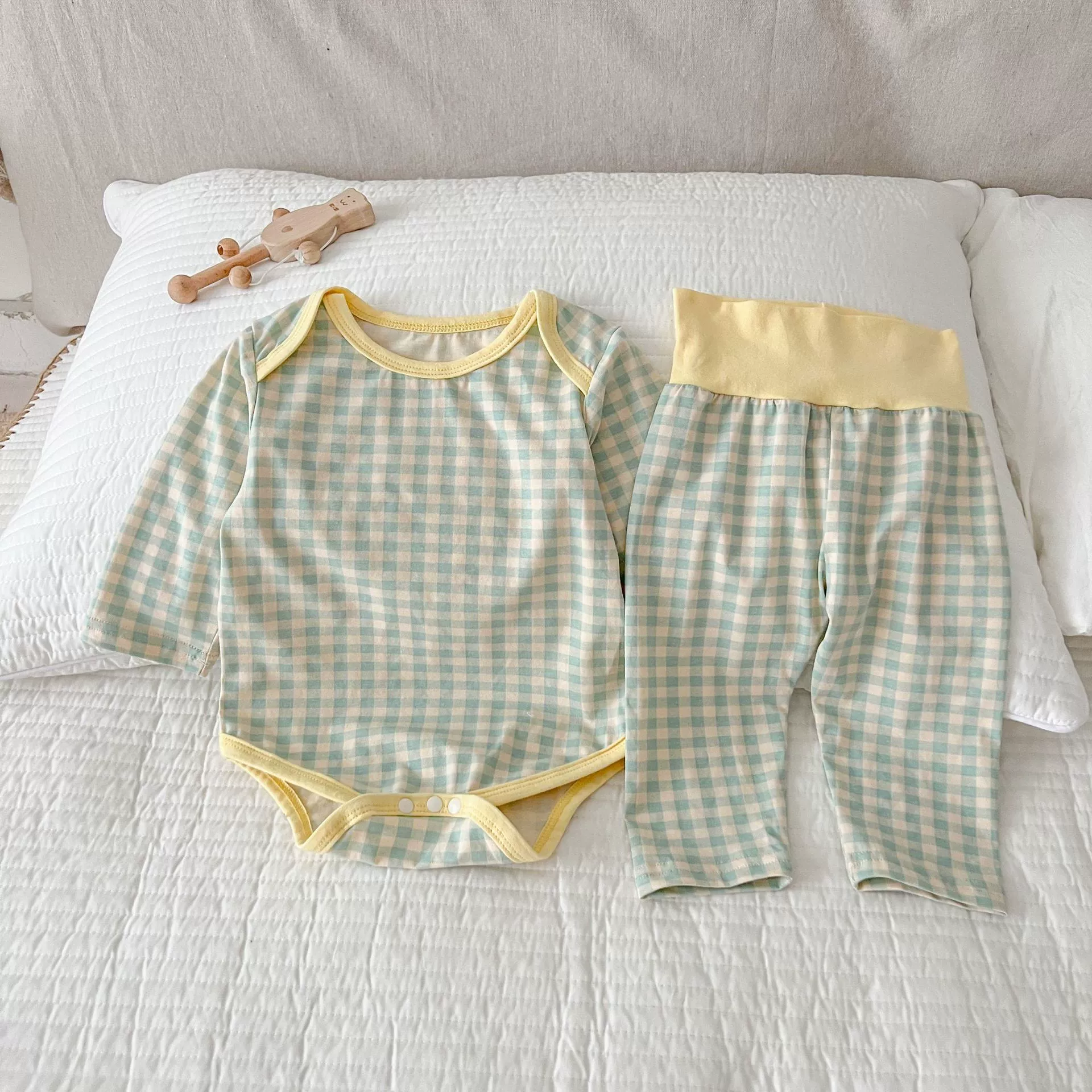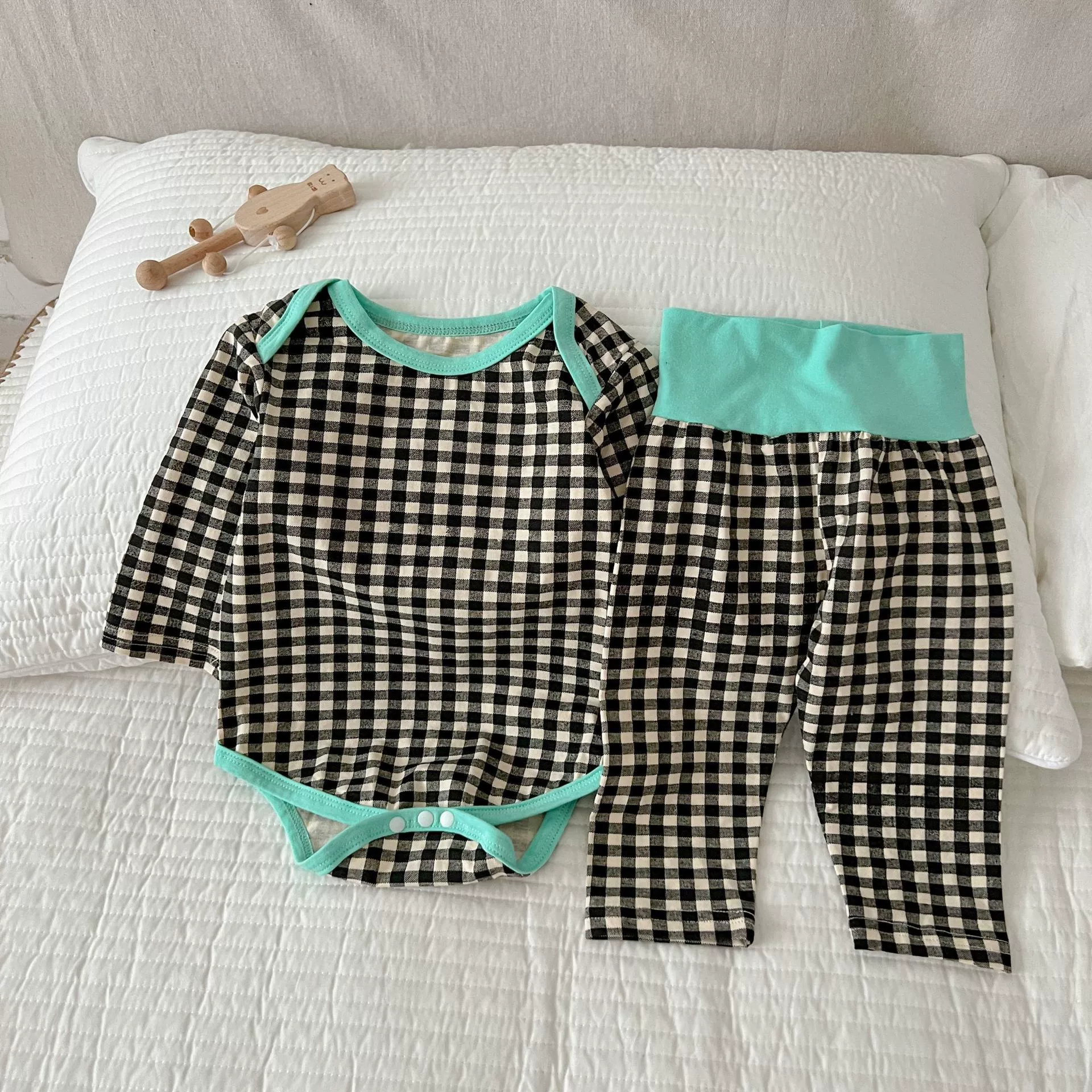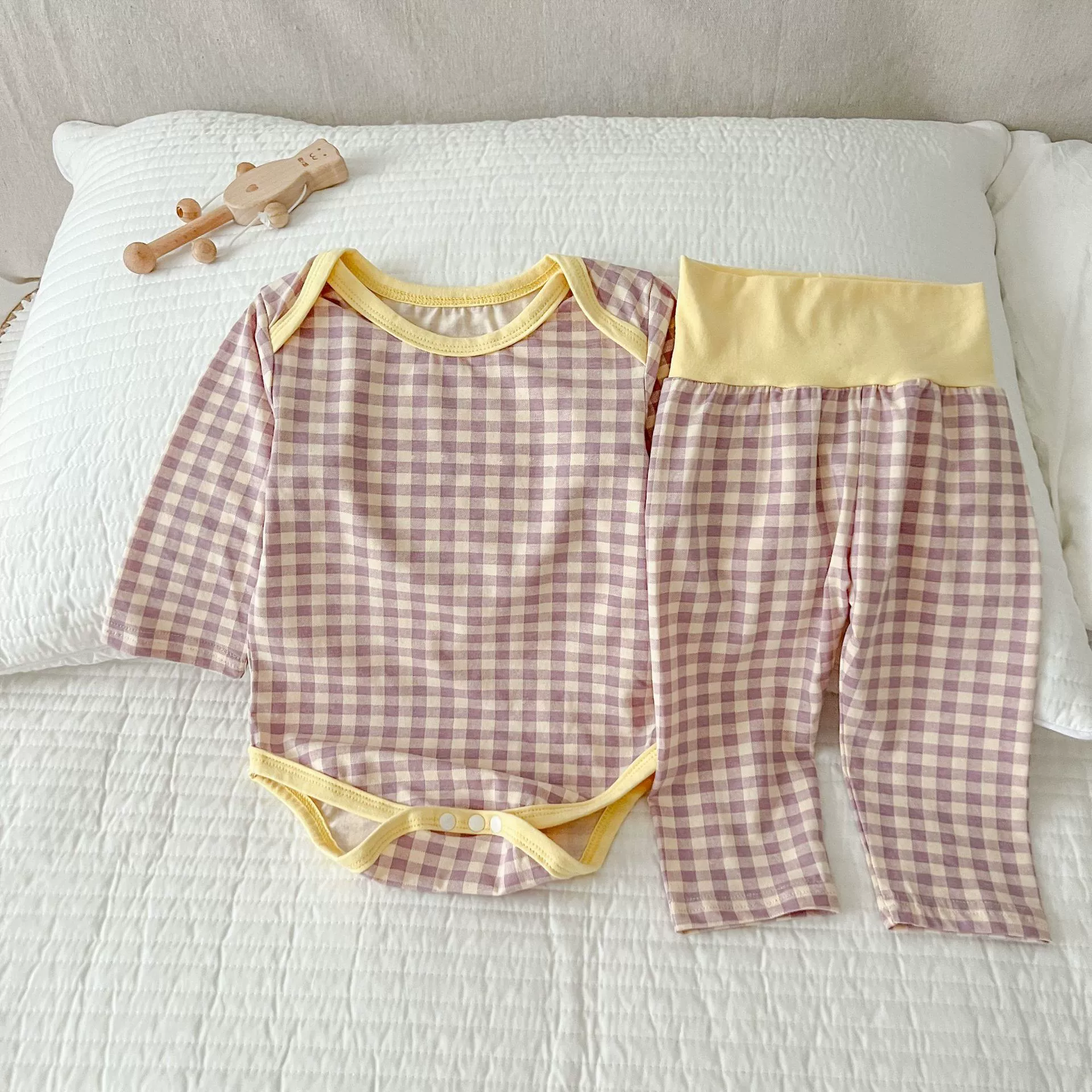 | nameOriginal | Korean style plaid high-waisted belly pant two-piece home wear set |