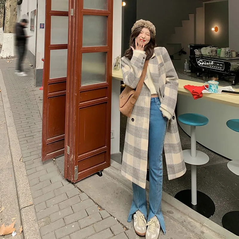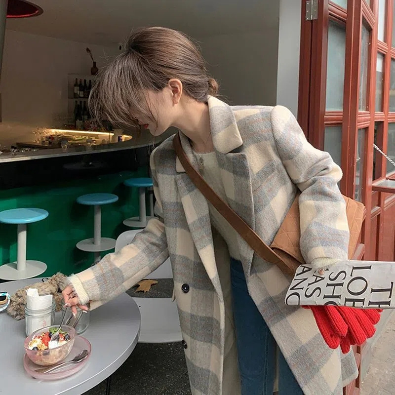 | nameOriginal | Korean style plaid woolen coat for women 2023 Spring and Autumn New elegant high-grade slimming mid-length woolen coat |