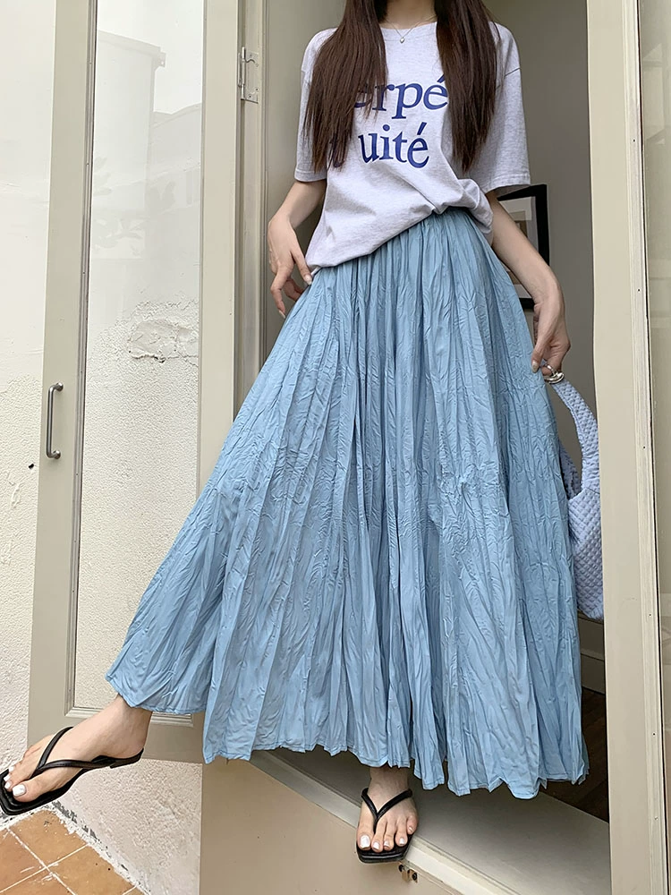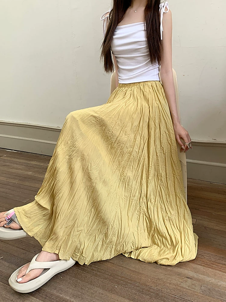 | nameOriginal | Korean style pleated large hem summer solid color versatile skirt |