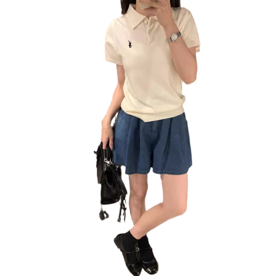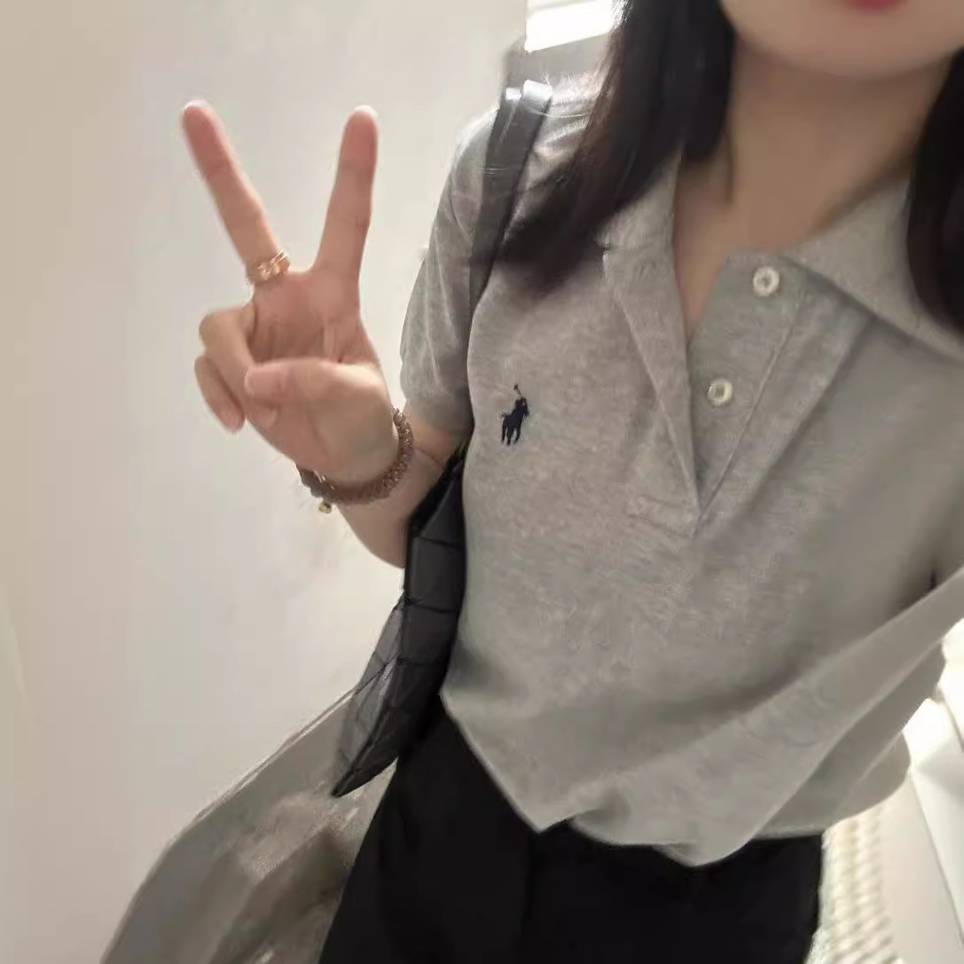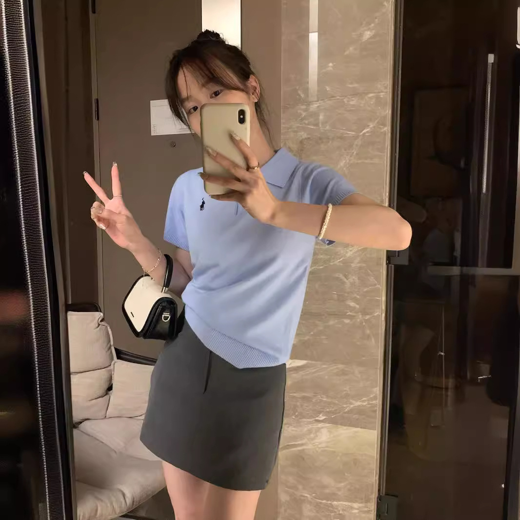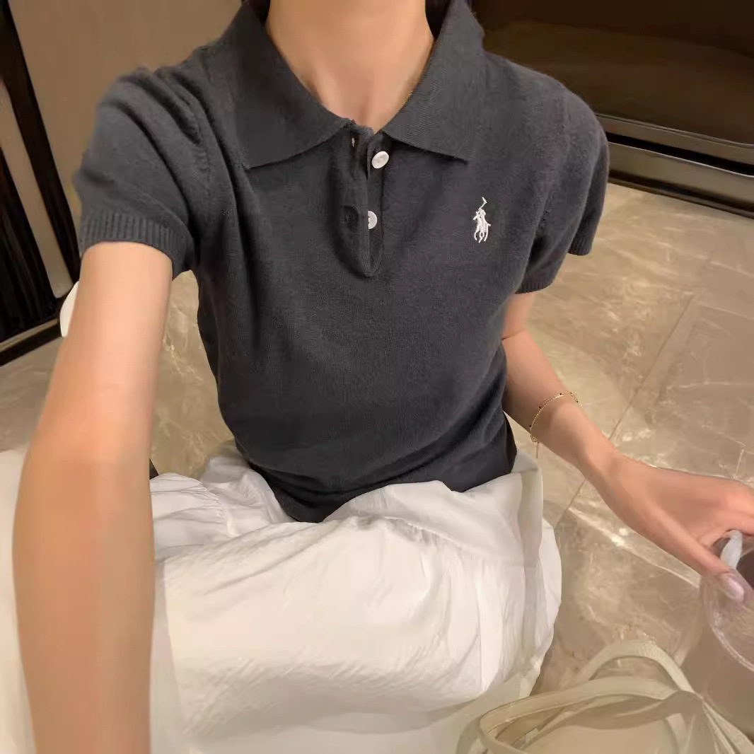 | nameOriginal | Korean Style Polo Collar Pony Malaf Embroidered Soft Waxy Knitwear Women's Pullover Short Sleeve Top Fashionable navy blue Grey |