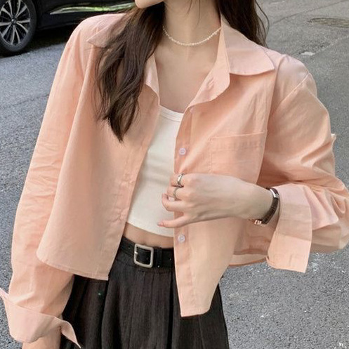 Korean Style Polo Collar Shirt Loose All-match Top Niche Simple Thin Jacket Casual All-match Short Sun-screen Shirt