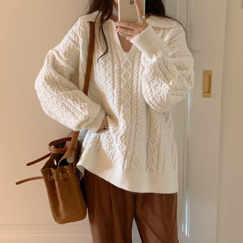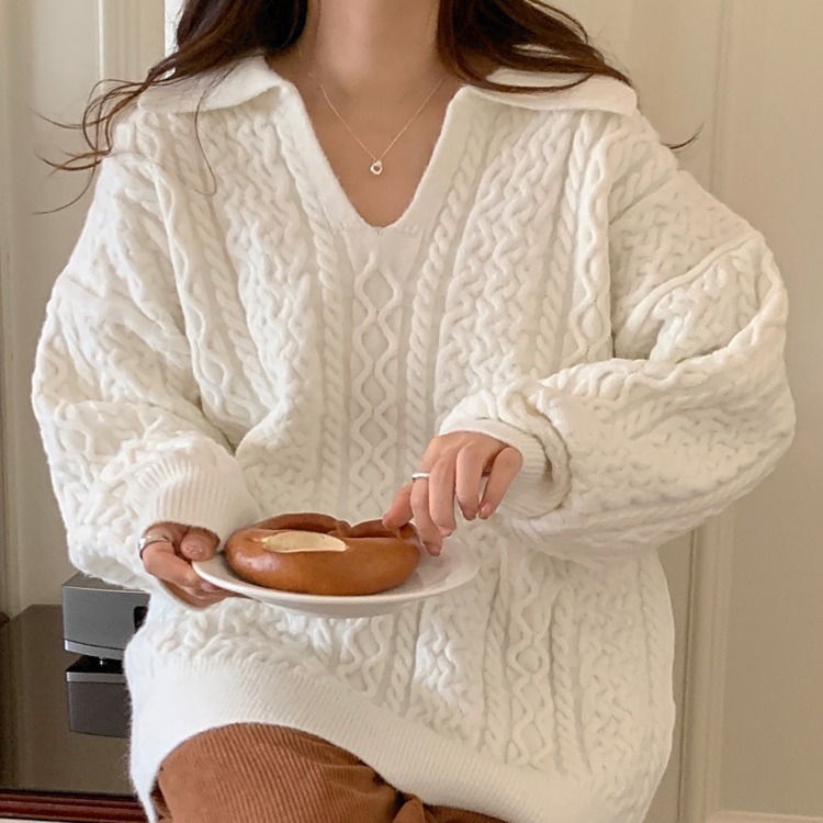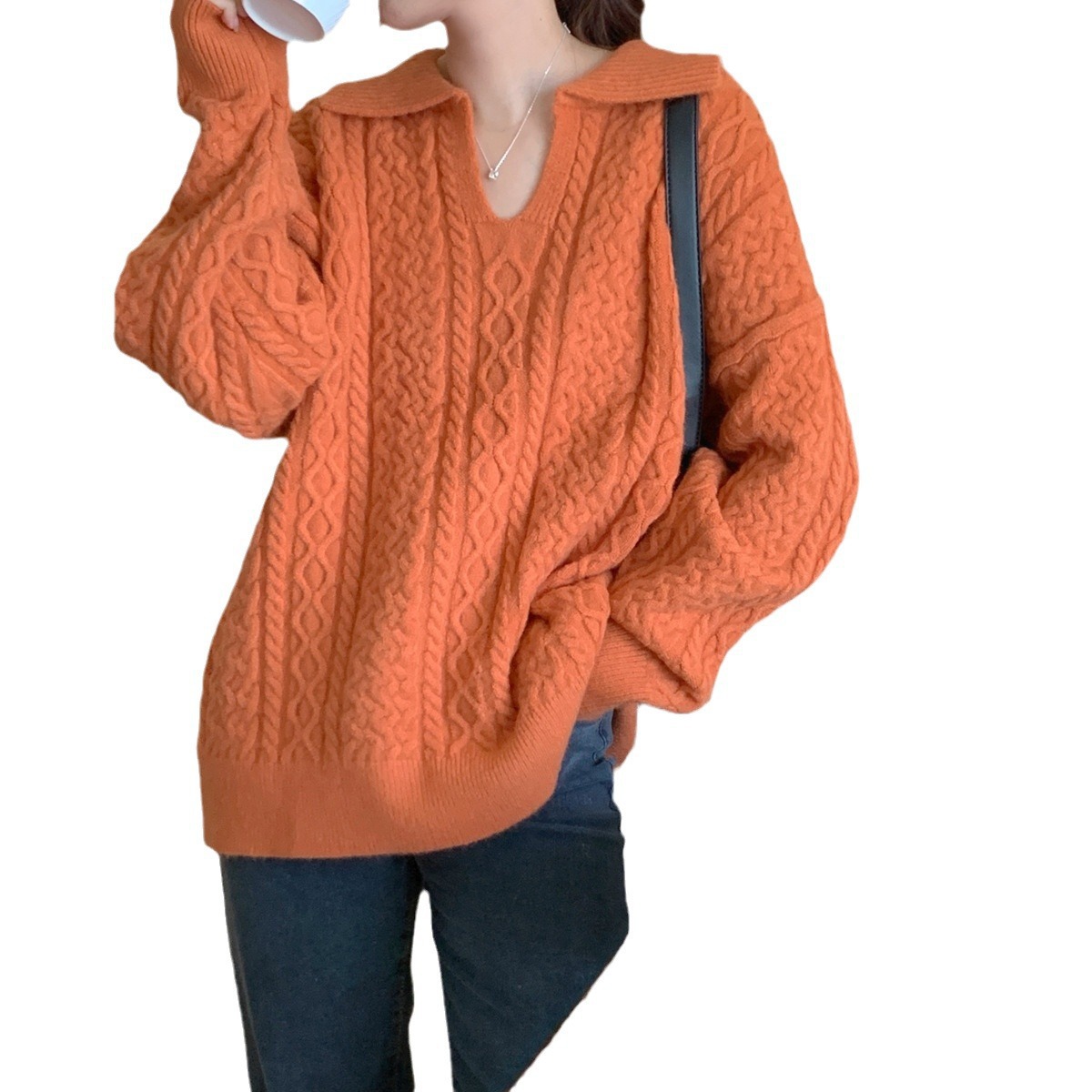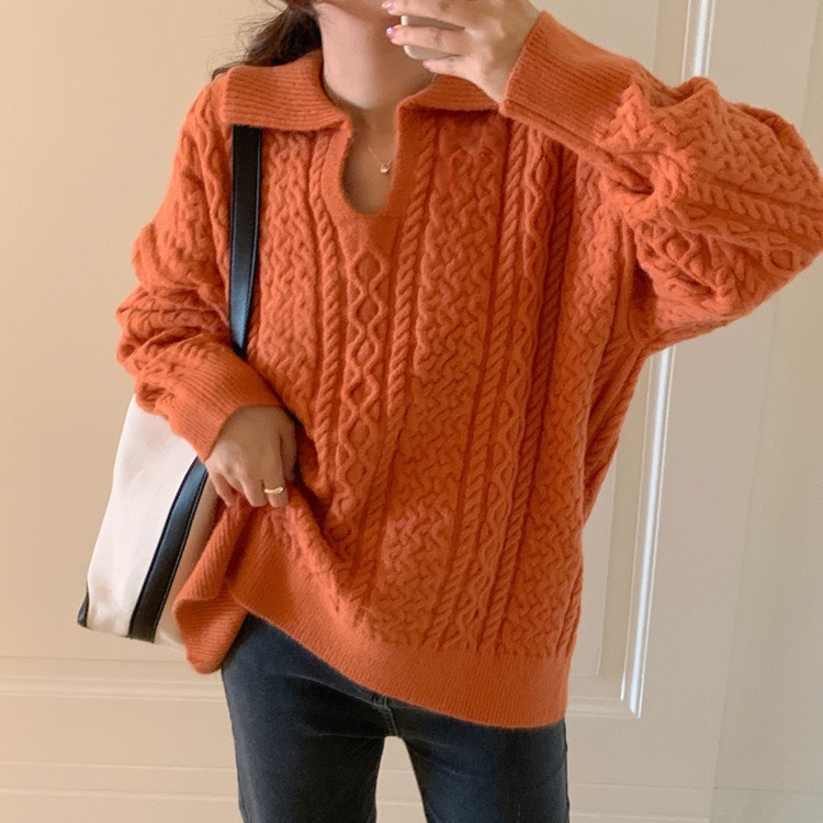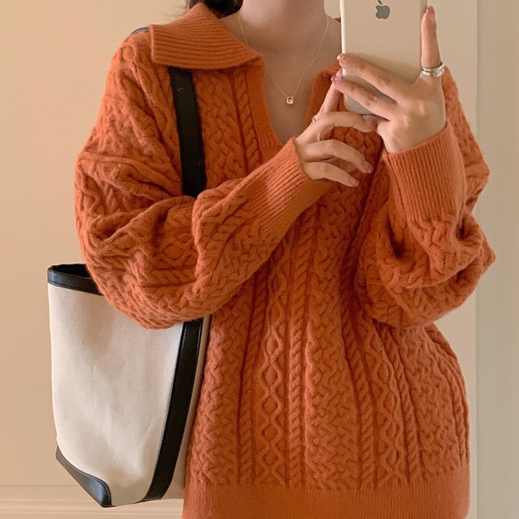 | nameOriginal | Korean Style POLO Collar Twist Mid-length Pullover Sweater Autumn and Winter Lazy Gentle Loose Soft Waxy Sweater Women's Clothing |