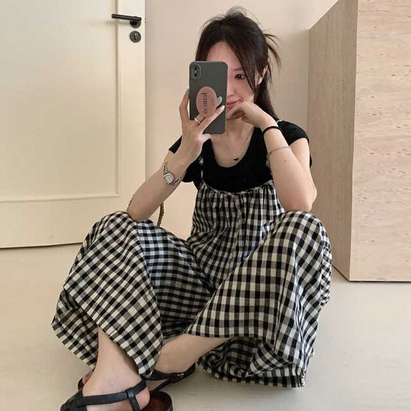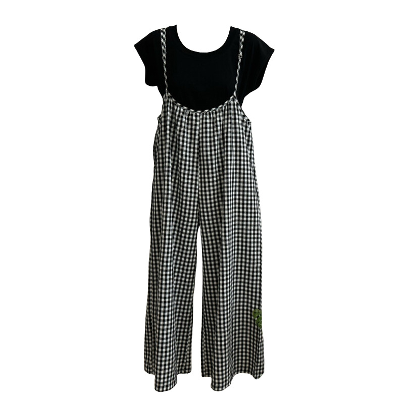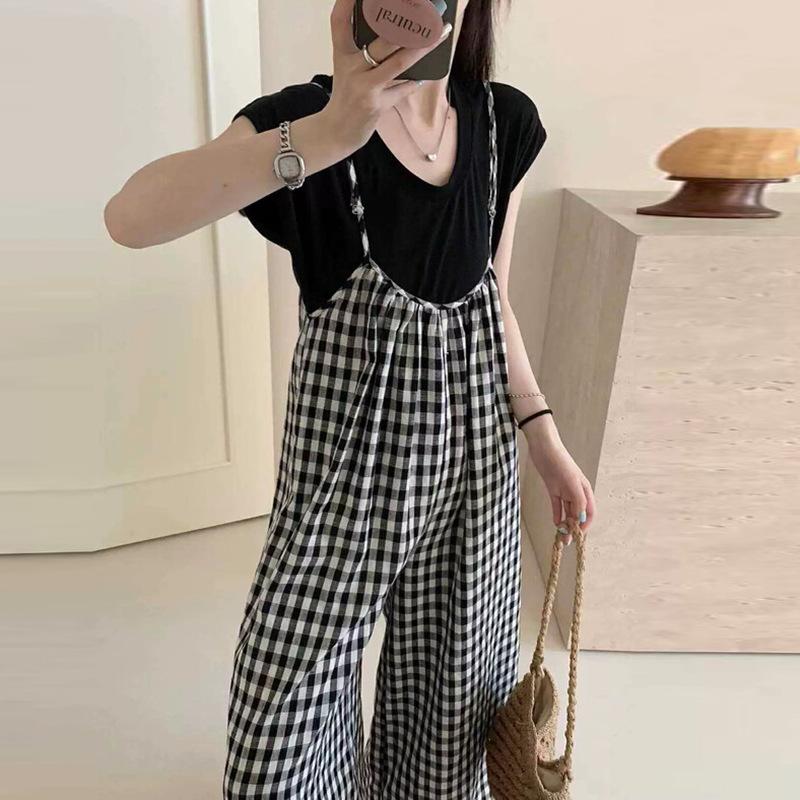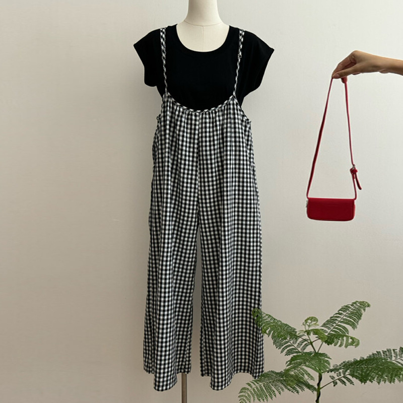 | nameOriginal | Korean Style Pregnant Women Casual All-match Round Neck Solid Color Short-sleeved T-shirt Plaid Elegant Slimming Suspender Suspender suit |