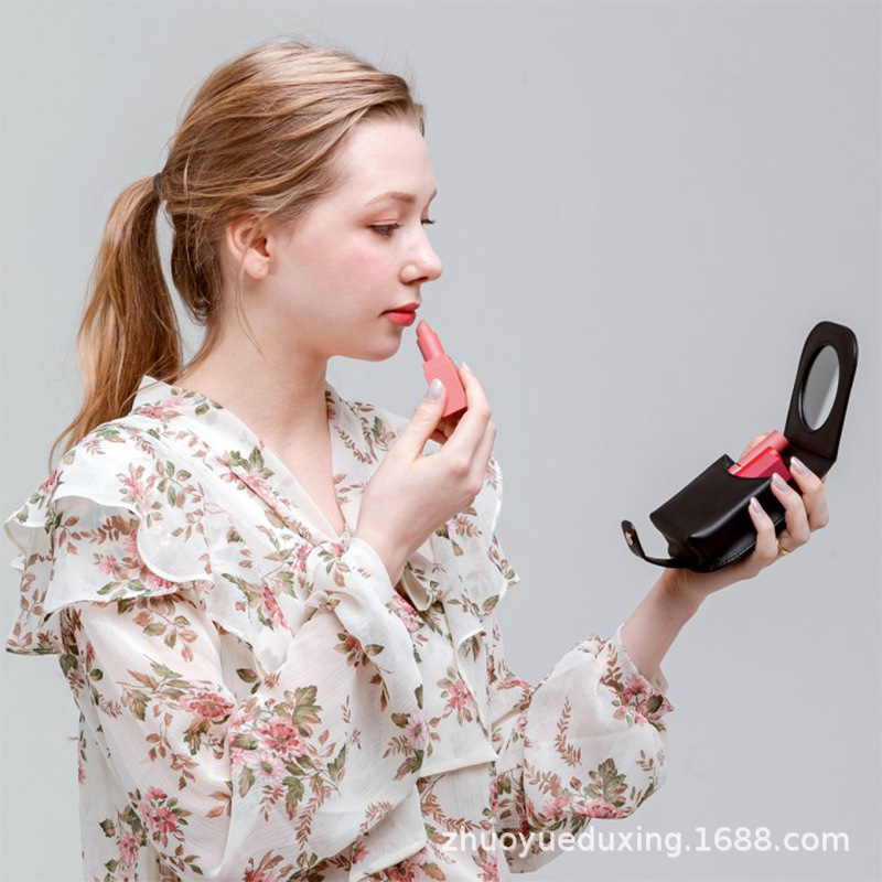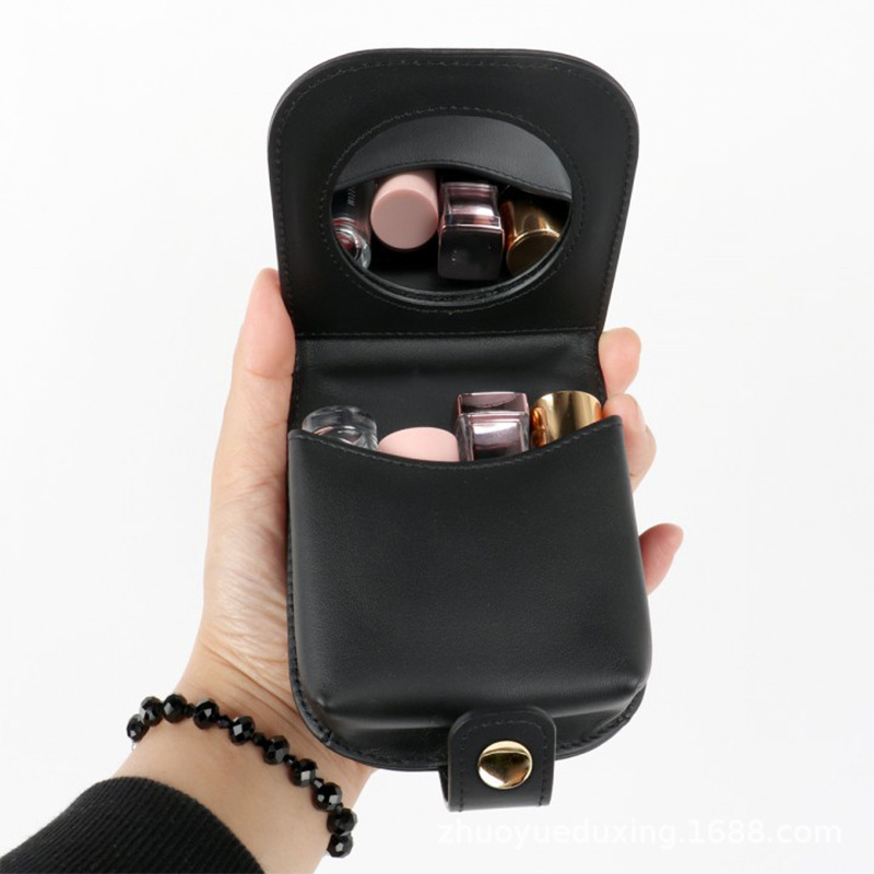 Korean-style PU leather mouth red envelope portable lipstick box with Mirror printed LOGO girlfriend lipstick bag