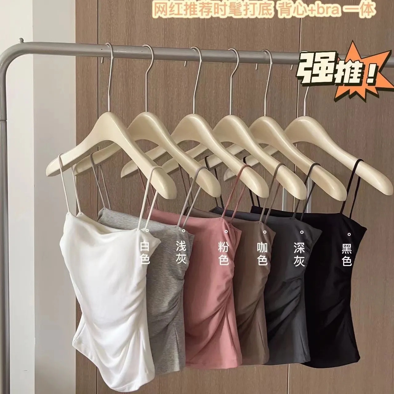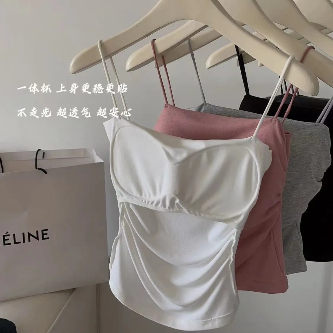Korean Style Pure Cotton Thin Shoulder Strap Camisole Vest Women’s Inner Integrated Chest Pad Base Underwear Slim-fit Slimming Thin Top