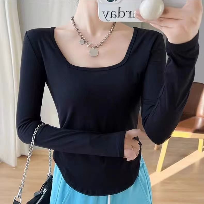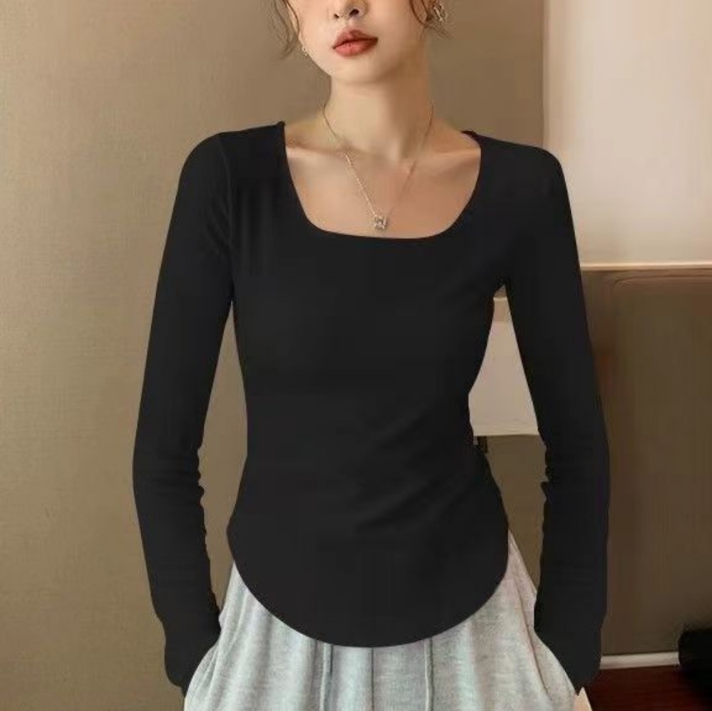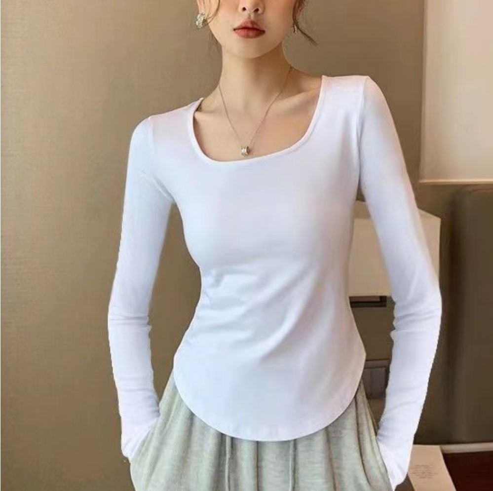 | nameOriginal | Korean Style Pure Desire Style Square Collar Curved Hem Slim-fit Long Sleeve White Base Shirt T-shirt Women's All-match Elegant Fashionable Top |