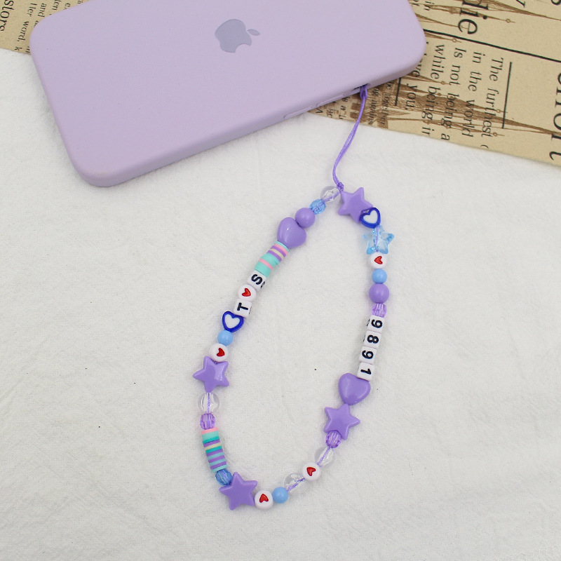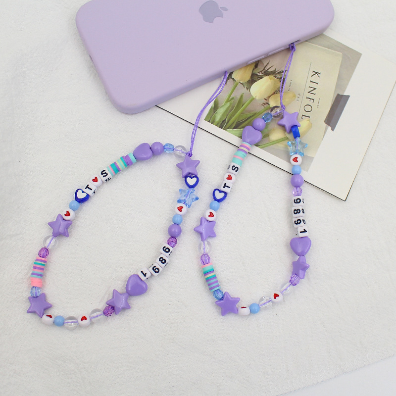 | nameOriginal | Korean style purple mobile phone chain beaded all-match hanging ring ins beaded pendant letter love star lanyard ornaments |