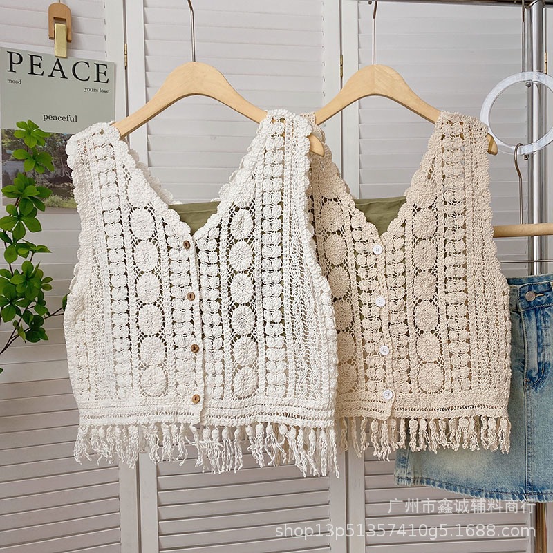 | nameOriginal | Korean Style Retro Design Tassel Outer Wear Hollow Vest Blouse Women's Summer New Niche Chic Short Top |