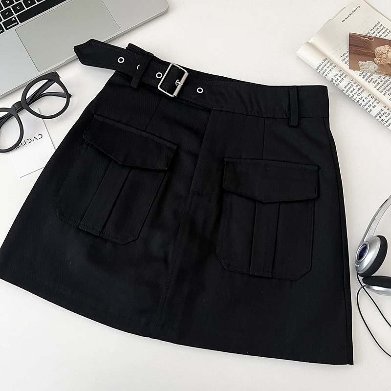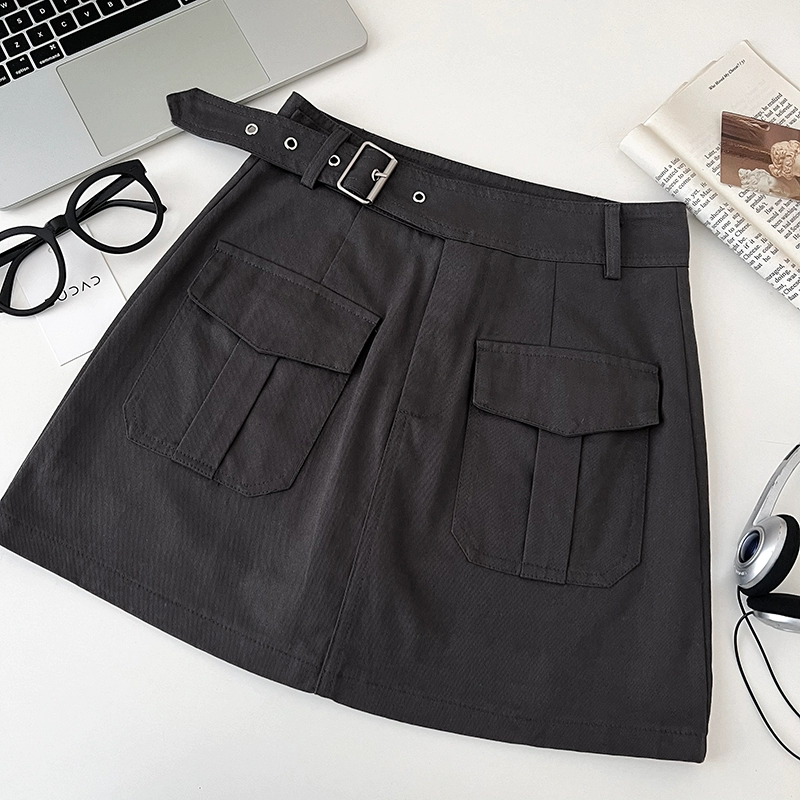 Korean style retro double pocket slim skirt summer work wear