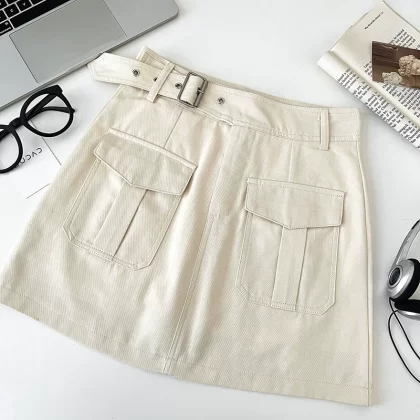 Korean retro double pocket slim short skirt summer workwear