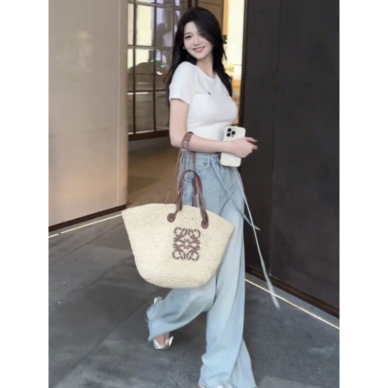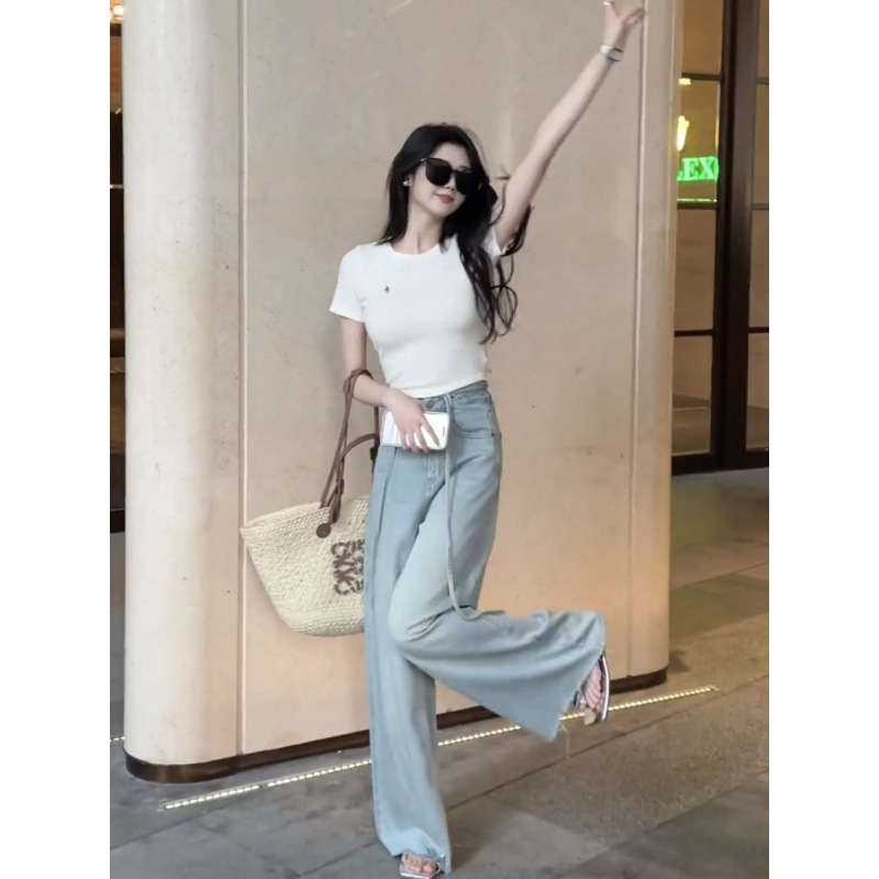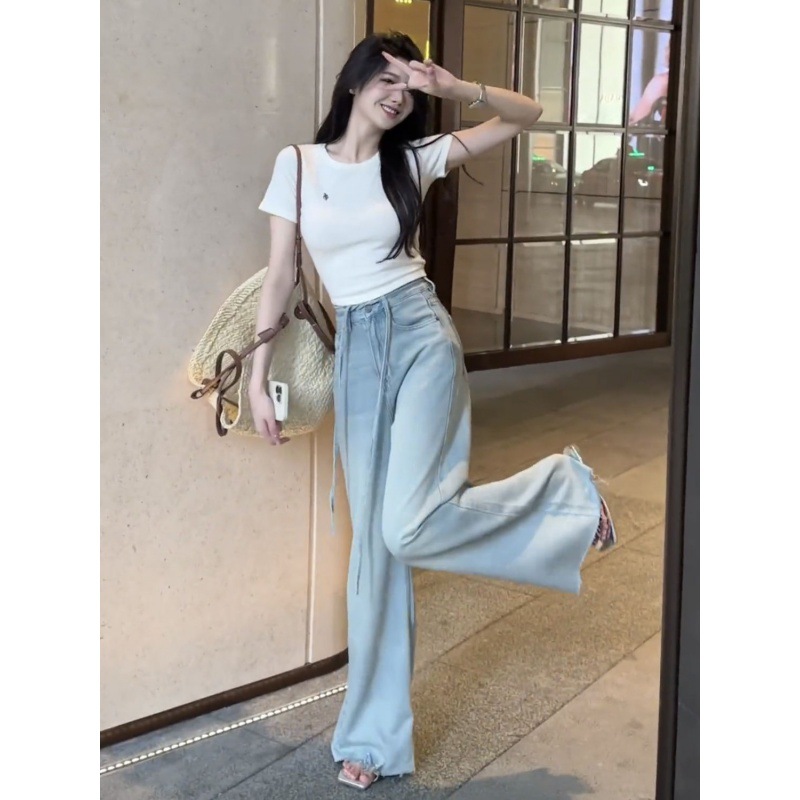 | nameOriginal | Korean Style Retro Light Color Strap High Waist Wide Leg Jeans Women's 2024 Summer Loose Slimming Straight Pants |