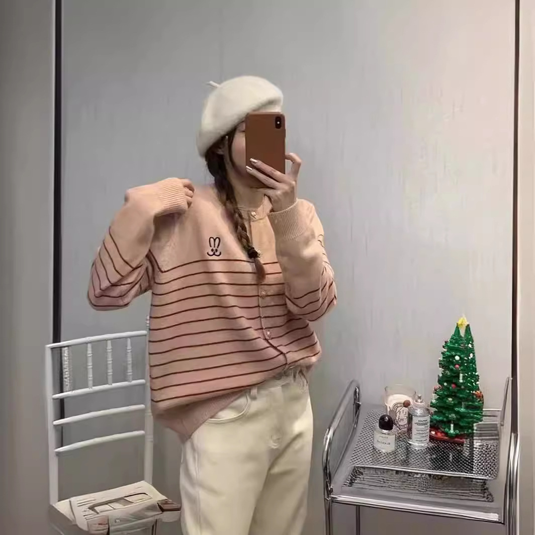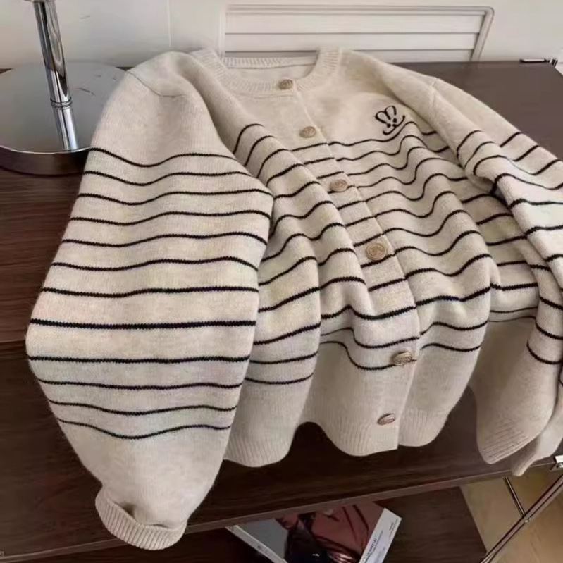 | nameOriginal | Korean Style Retro Striped Sweater Coat Women's 2024 New Design Sense Niche Soft Waxy Knitted Cardigan Top 177 |