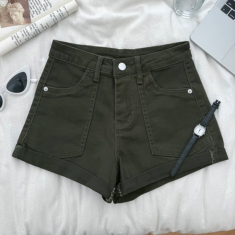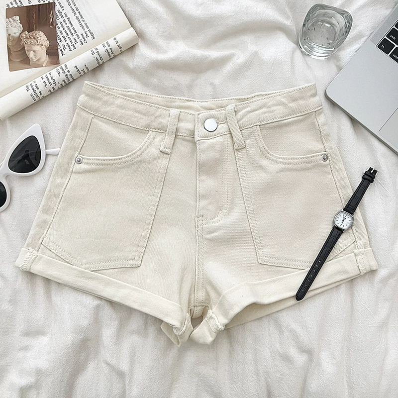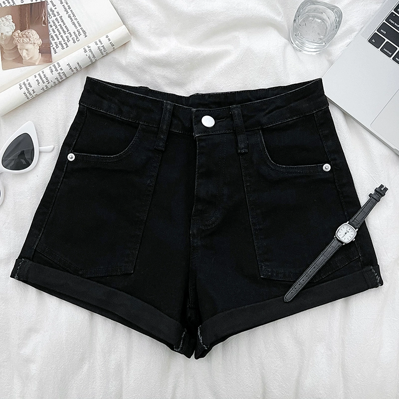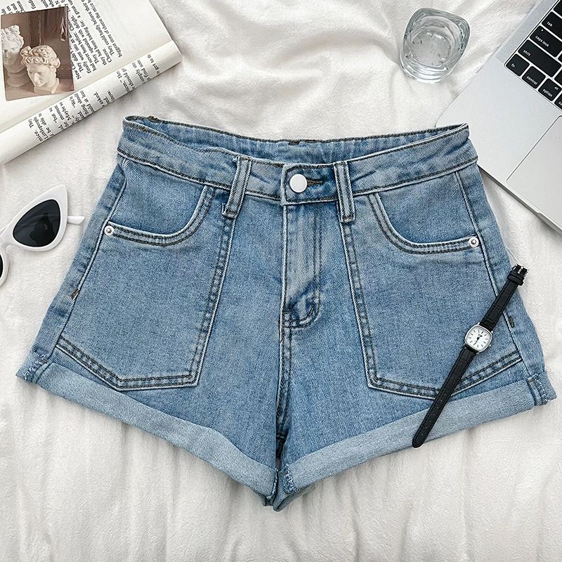 | nameOriginal | Korean style retro versatile high-waisted slim double-pocket denim shorts curled wide-leg pants casual pants A-line pants for women |