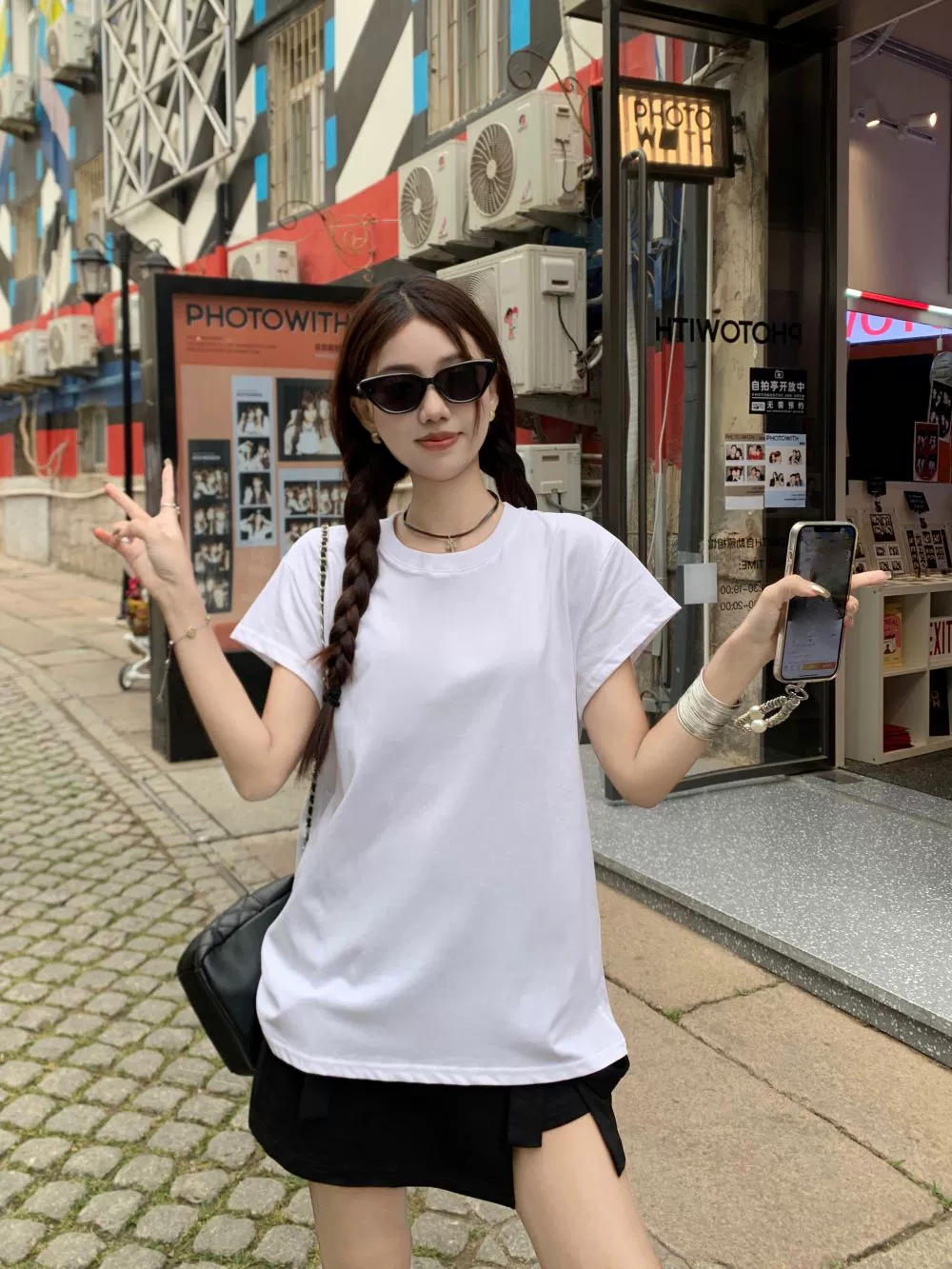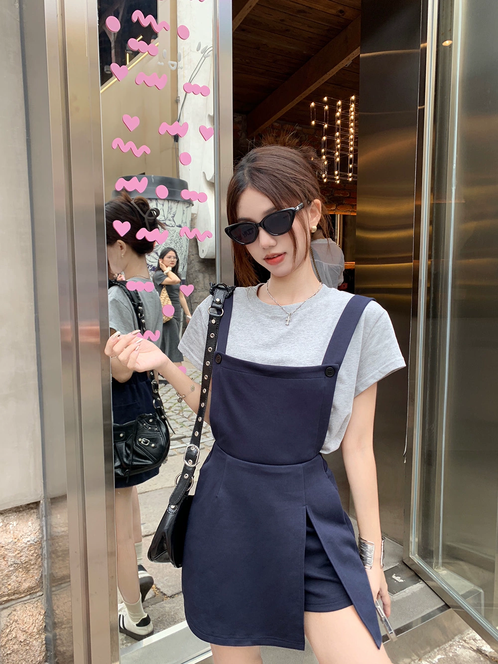 | nameOriginal | Korean style right shoulder high waist slit suspender short sleeve T-shirt |