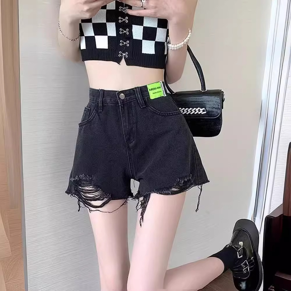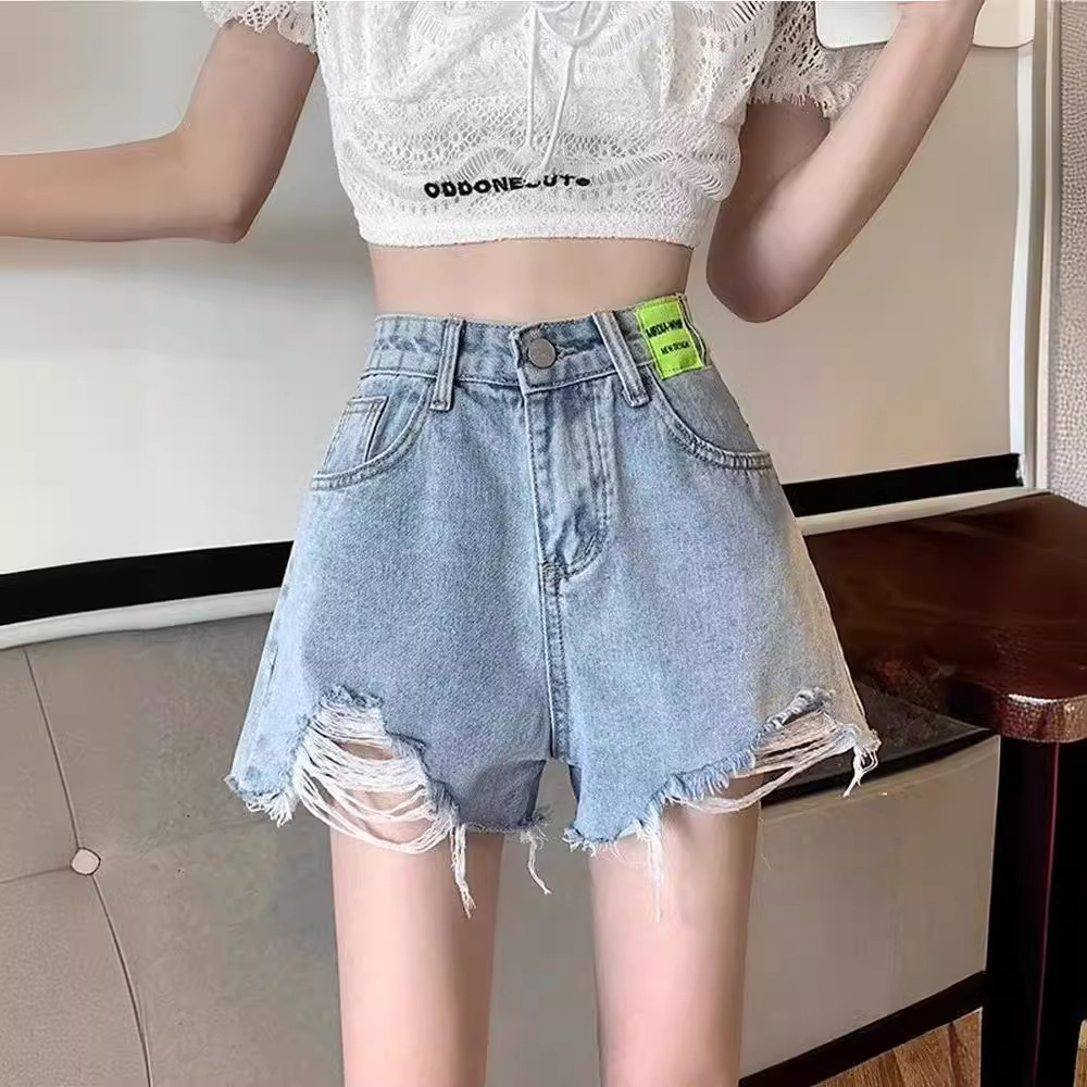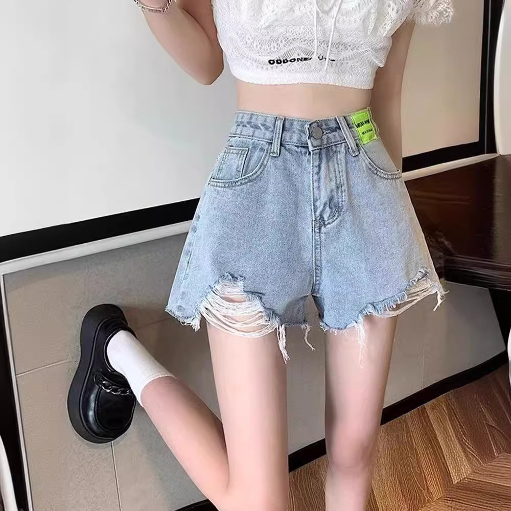 | nameOriginal | Korean-style Ripped Denim Shorts Women's 2024 Summer High Waist A- shaped Shorts Loose Slimming Wide-leg Hot Pants Ins |