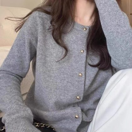 | nameOriginal | Korean style round neck casual sweater women's cardigan 2024 spring new small long sleeve sweater design top |