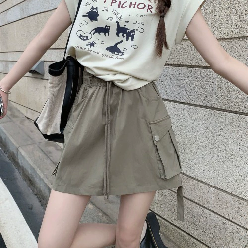| nameOriginal | Korean style round neck flying sleeves drawstring workwear bust cartoon |