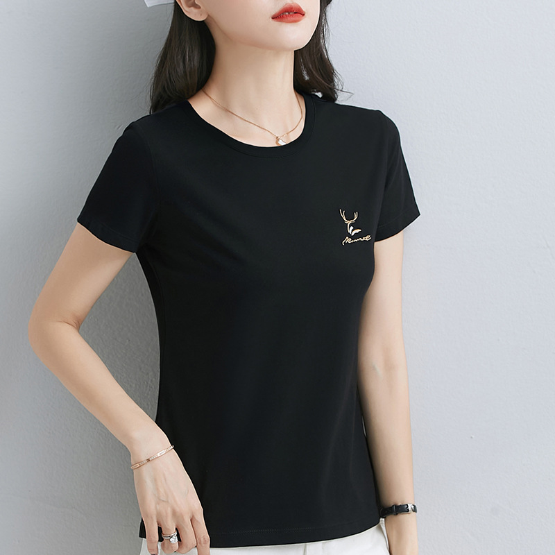 | nameOriginal | Korean Style Round Neck Short-Sleeved T-Shirt Women's Summer Thin 2024 New Slim-Fit Western Style Royal Blue Middle-aged T-Shirt |
