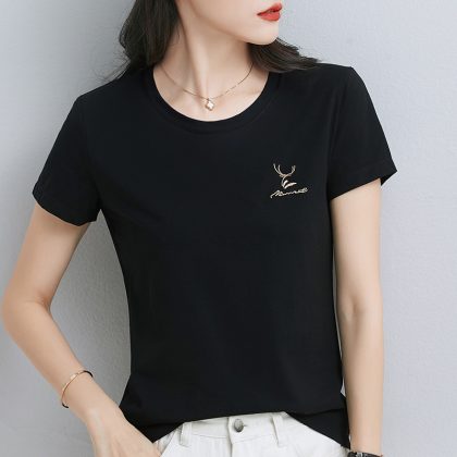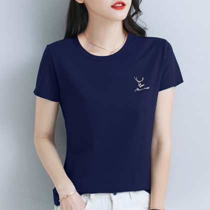 | nameOriginal | Korean Style Round Neck Short-Sleeved T-Shirt Women's Summer Thin 2024 New Slim-Fit Western Style Royal Blue Middle-aged T-Shirt |