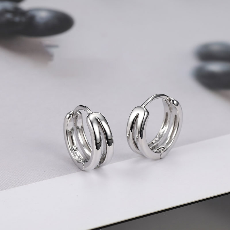 | nameOriginal | Korean Style S925 Silver Needle Simple Double Layer Ear Ring Ear Buckle Men's and Women's Retro Fashion Hip Hop Punk Hollow Creative Earrings |