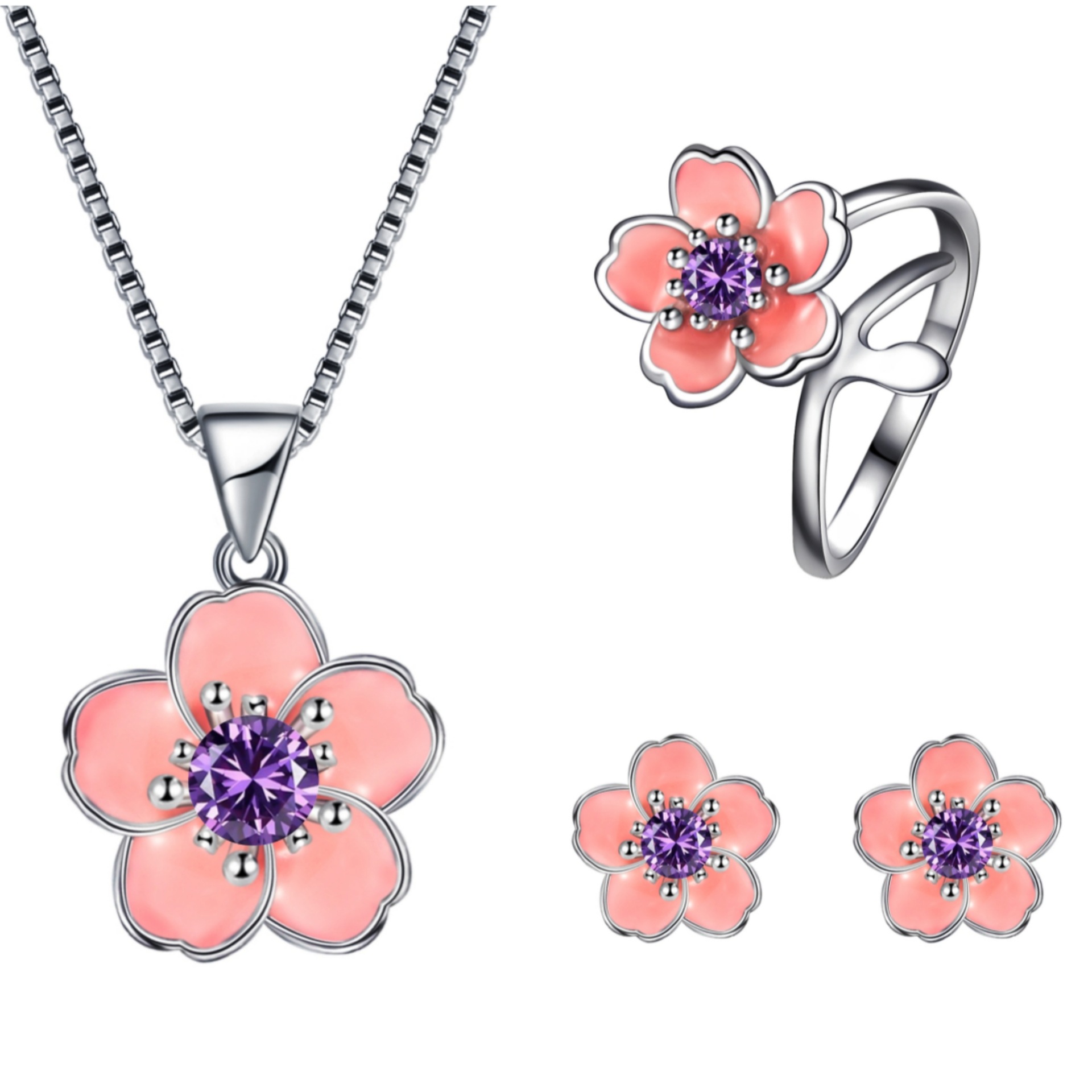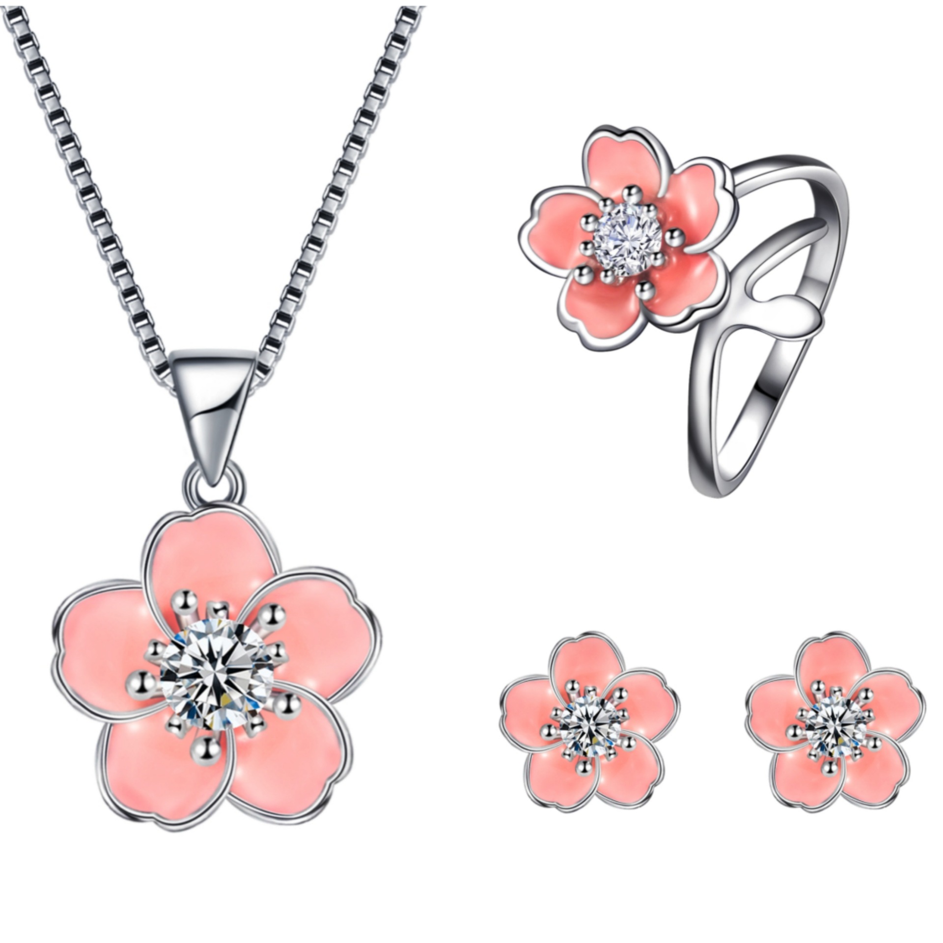 | nameOriginal | Korean style silver Sweet Peach enamel craft stud earrings pendant elegant epoxy Garland Pink Diamond cherry blossom jewelry set |