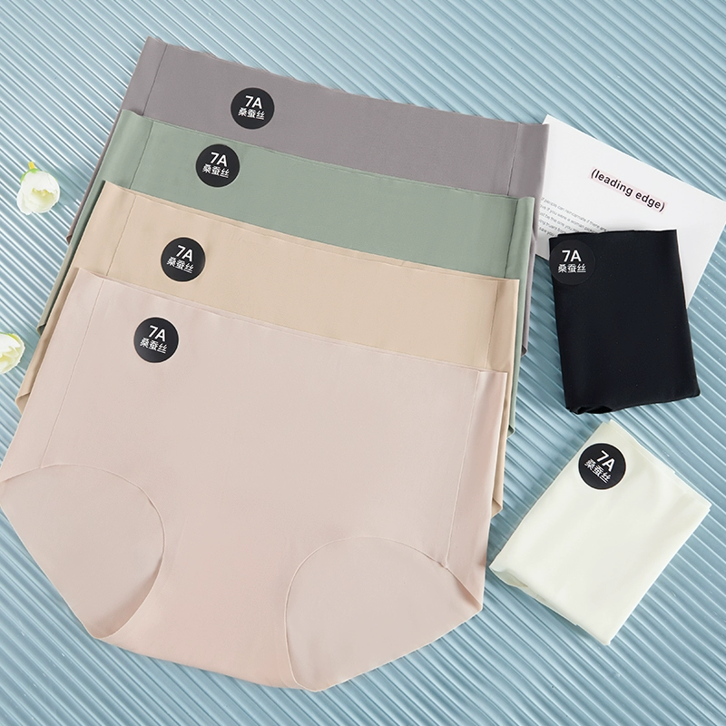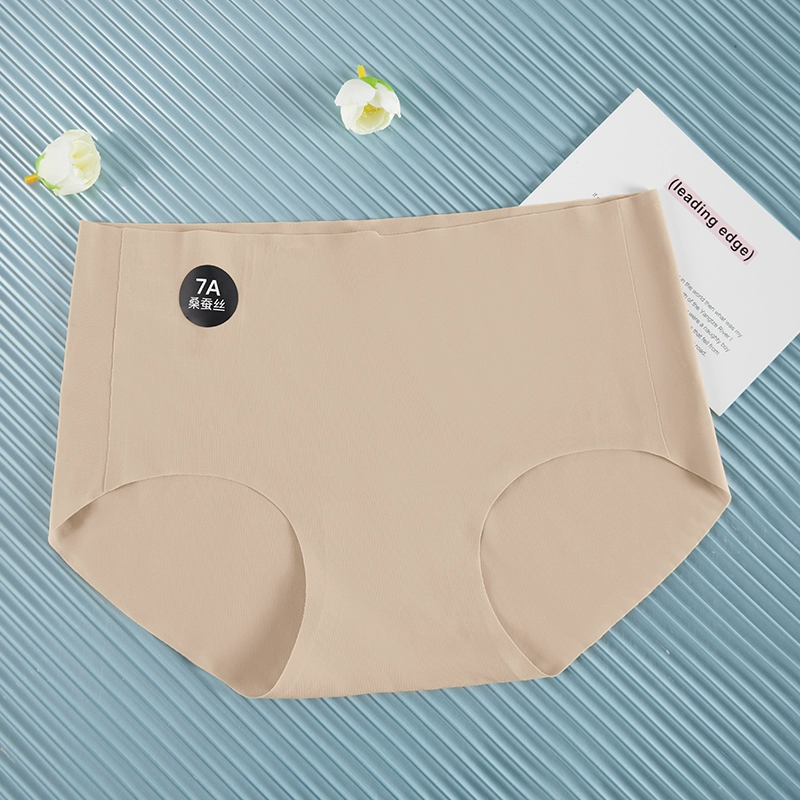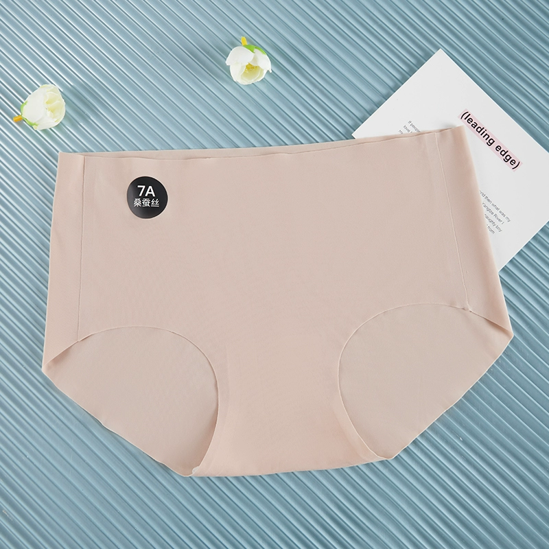 Korean style simple 7a mulberry silk antibacterial bottom crotch seamless non-pinching girl mid-waist women’s triangle underwear invisible