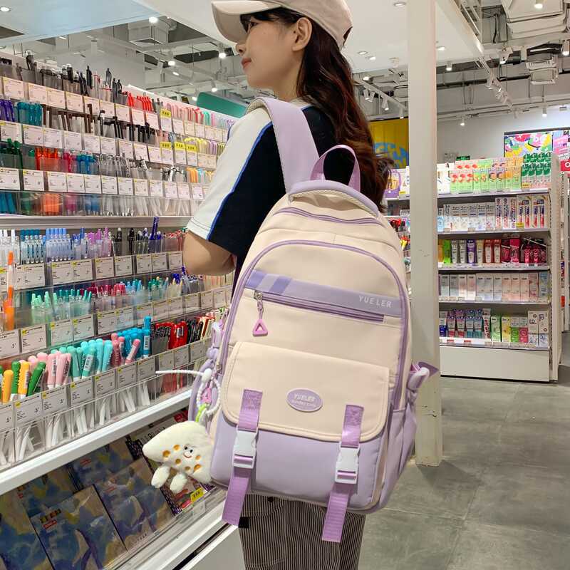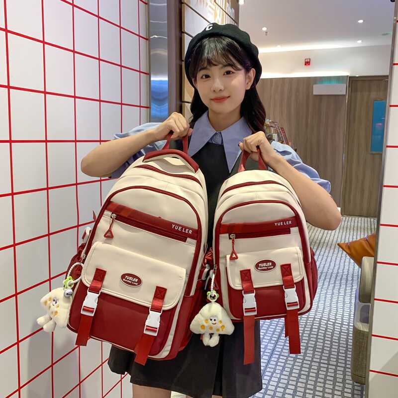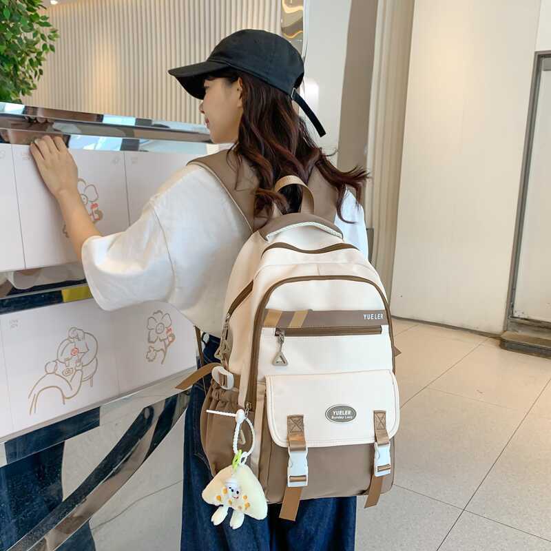 Korean Style Simple Contrast Color Schoolbag Small Fresh Style Campus Style Fashionable All-match Backpack Lightweight Lightweight Spine Protection Backpack