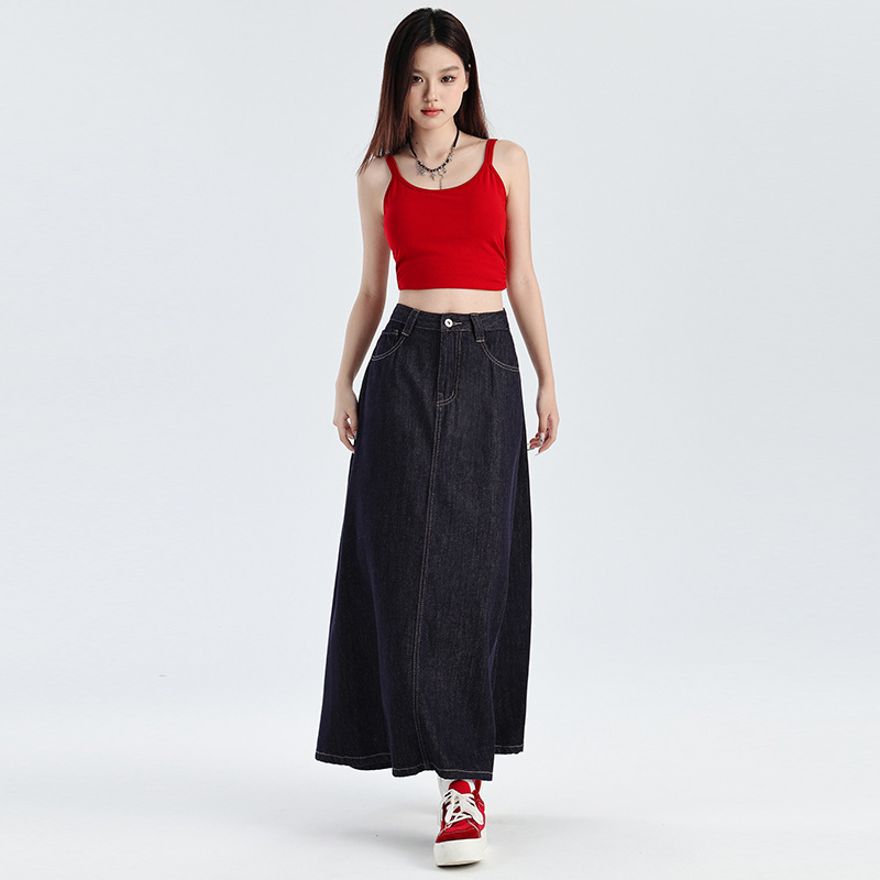 | nameOriginal | Korean Style Simple Denim Skirt Women's 2024 Summer New High Waist Loose A- line Umbrella Skirt Slimming All-match Long Skirt |