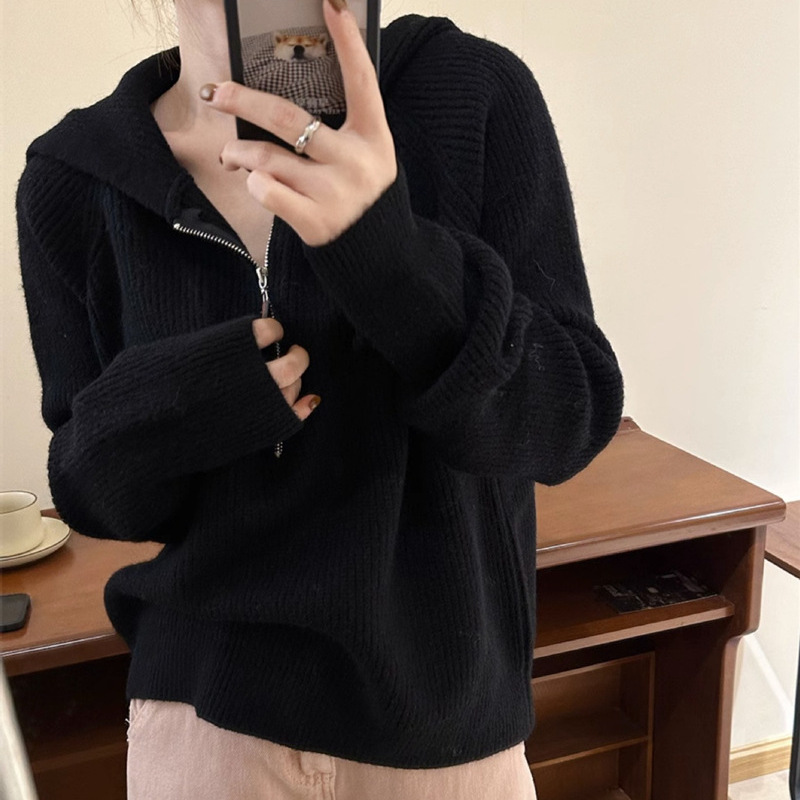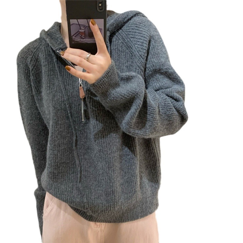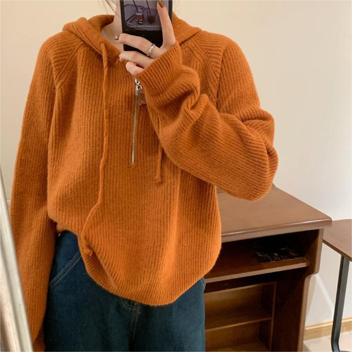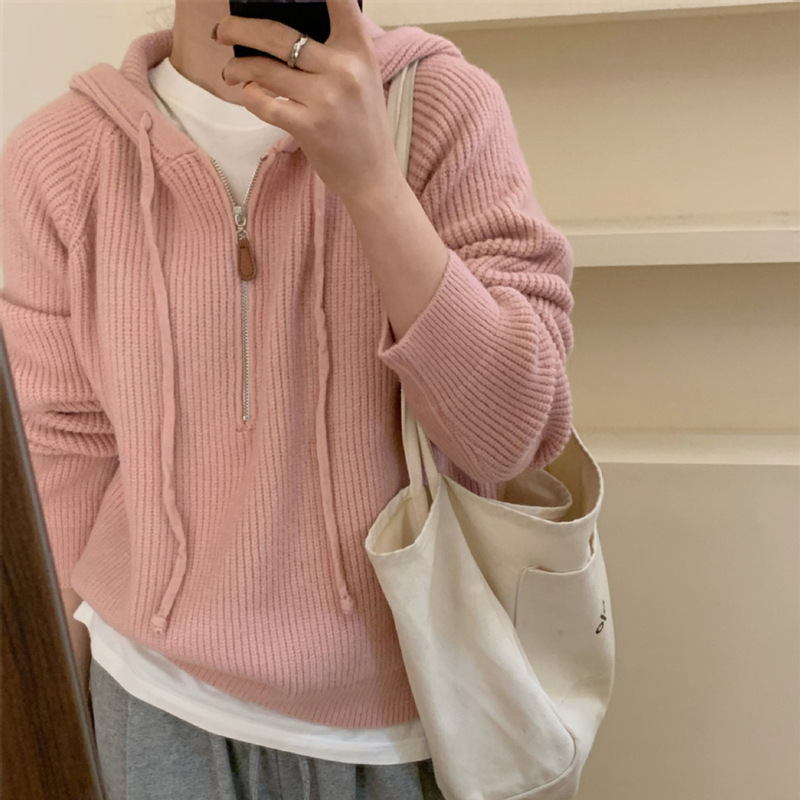 | nameOriginal | Korean style simple half zipper hooded pullover women's autumn and winter New versatile loose lazy style sweater top |