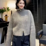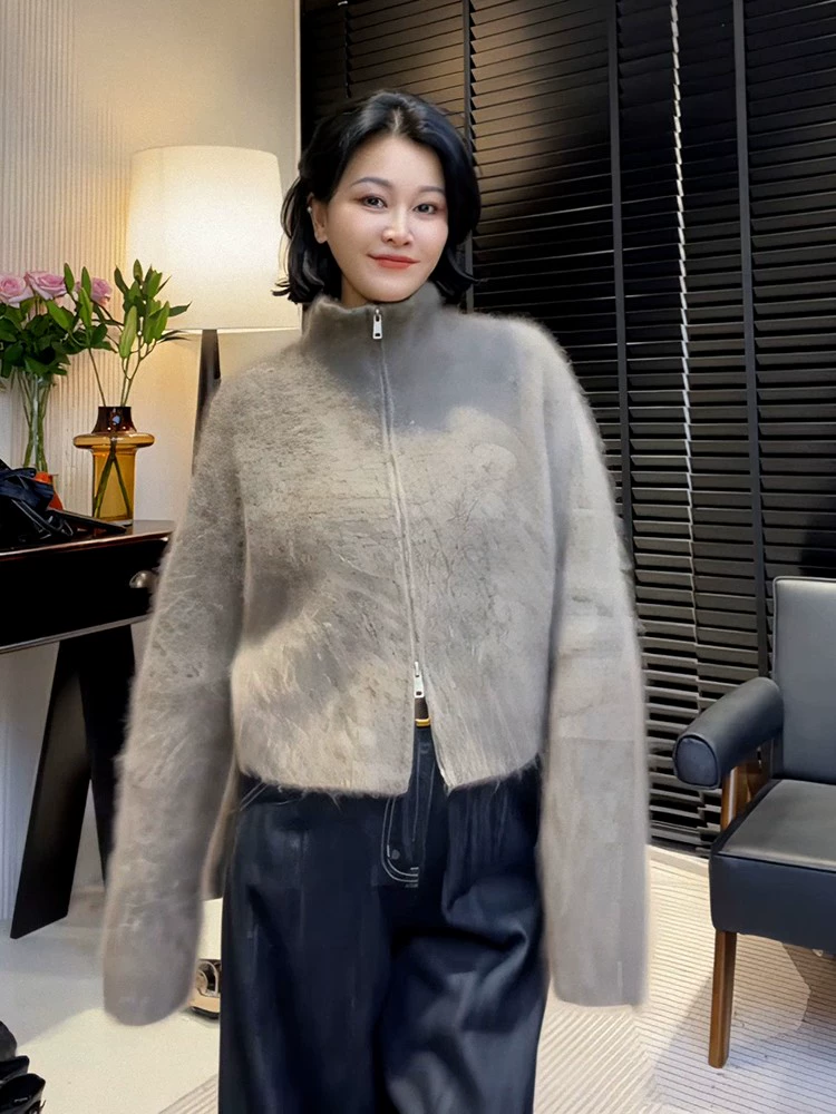 | nameOriginal | Korean style simple style mohair stand collar double zipper sweater cardigan coat for women autumn simple casual top |
