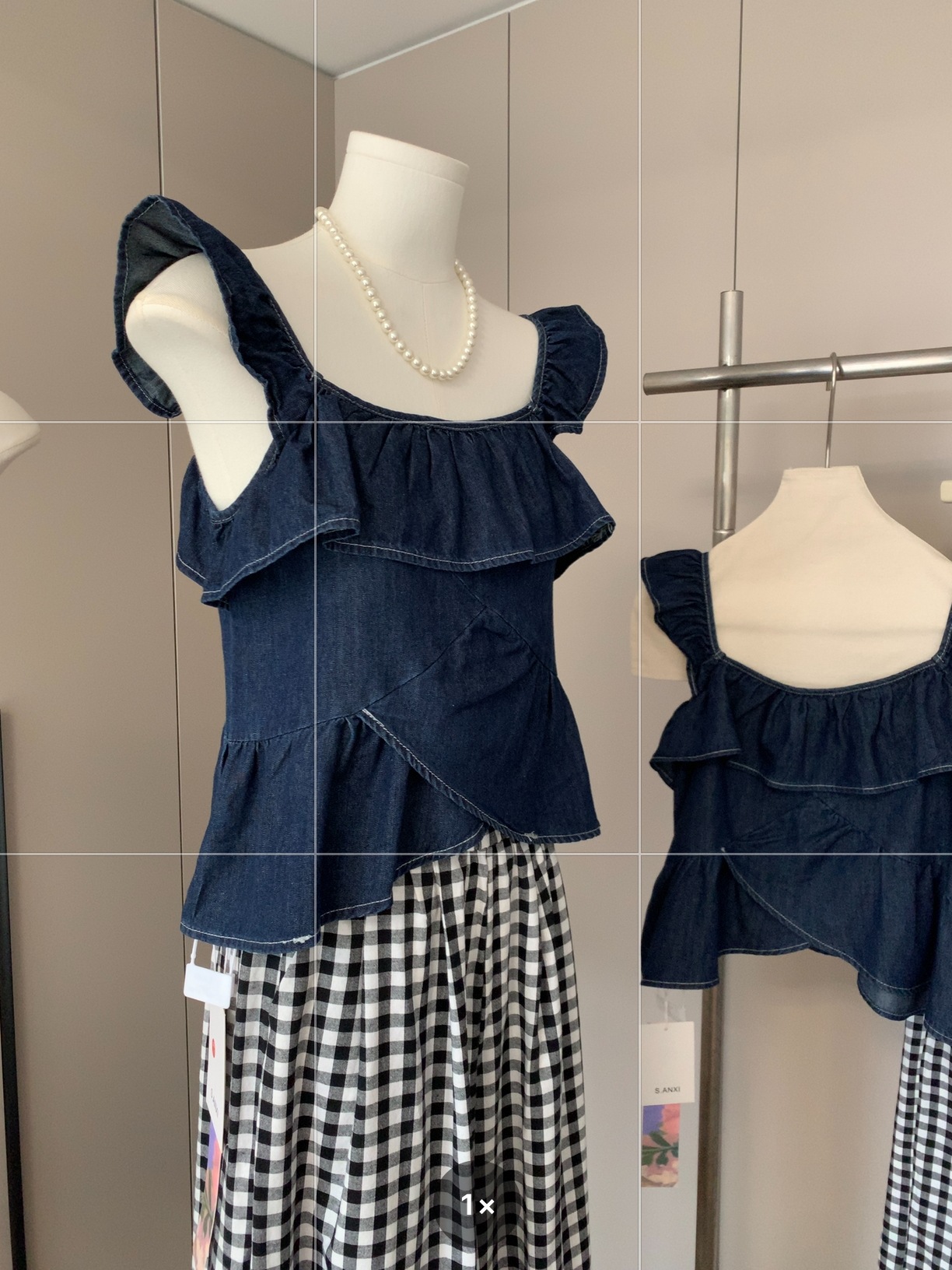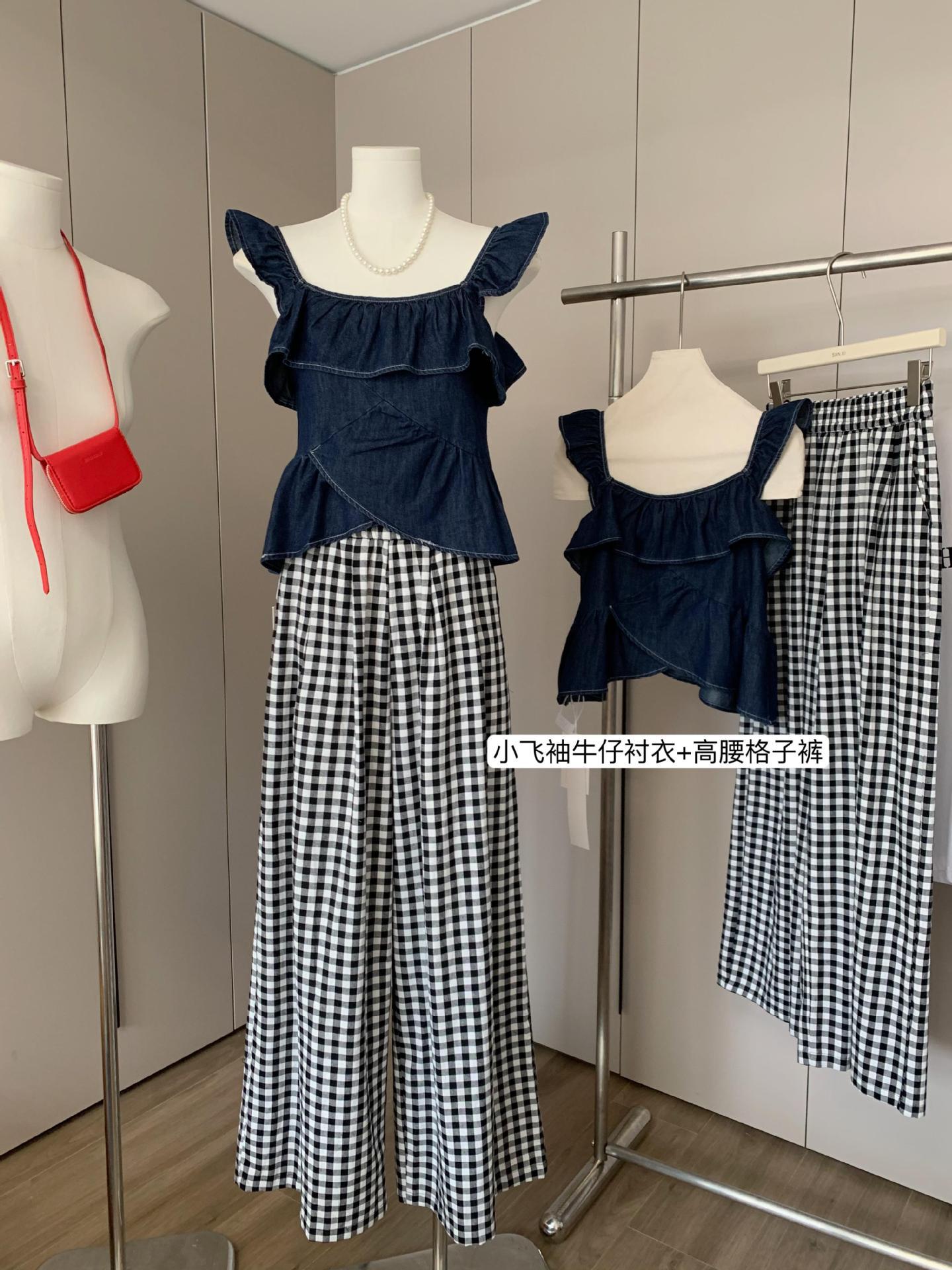 | nameOriginal | Korean Style Small Flying Sleeve Denim Shirt High Waist Plaid Casual Pants Fashion Two-piece Suit Women's Summer New |