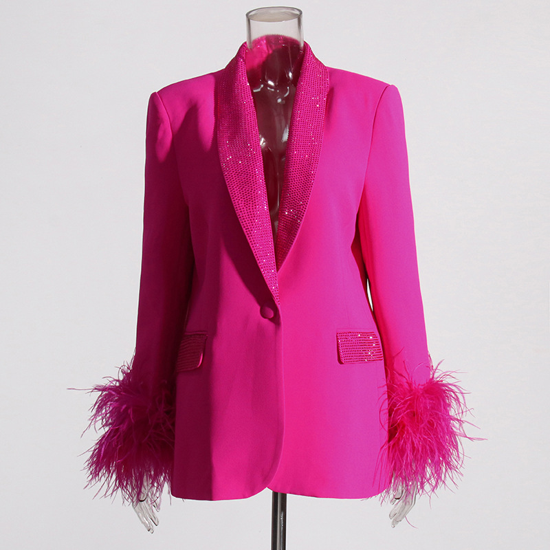 | nameOriginal | Korean style socialite style 2024 spring new green collar long sleeve ostrich feather stitching design solid color small suit jacket |