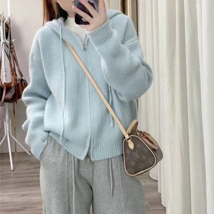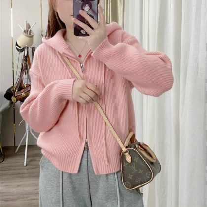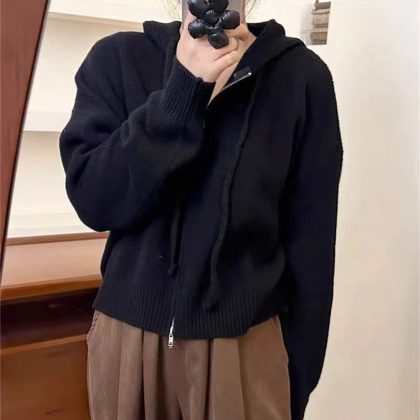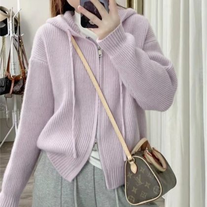 | nameOriginal | Korean Style Solid Color Double Zipper Hooded Sweater Women's 2024 Early Autumn New Loose All-match Soft Waxy Knitted Cardigan Jacket |
