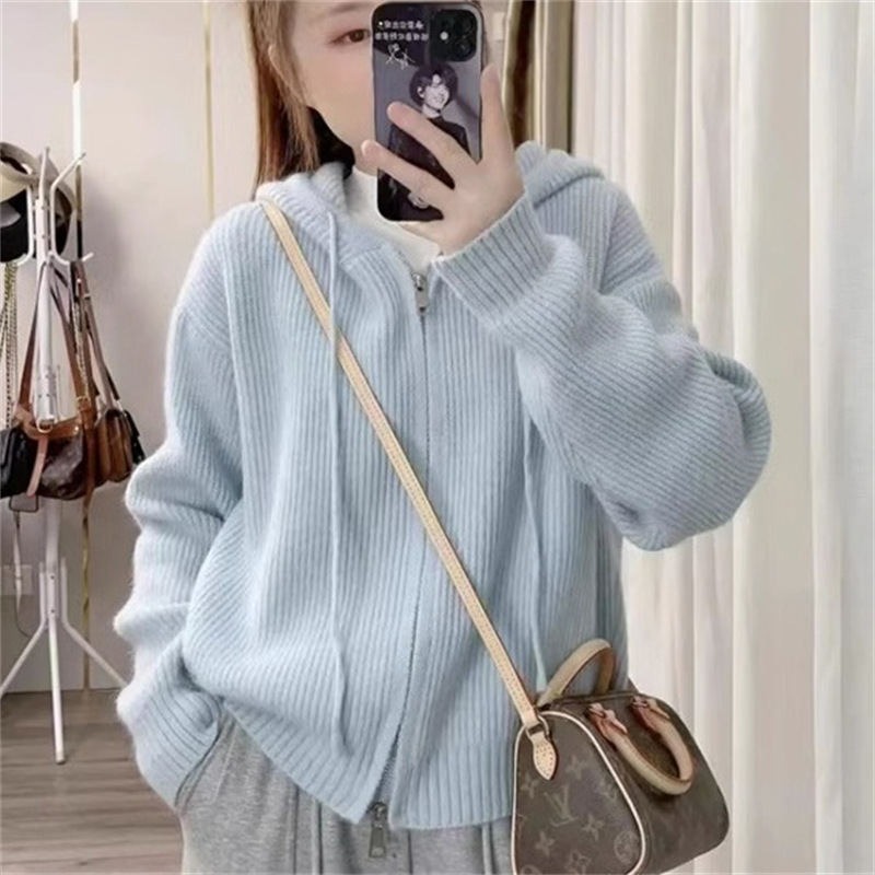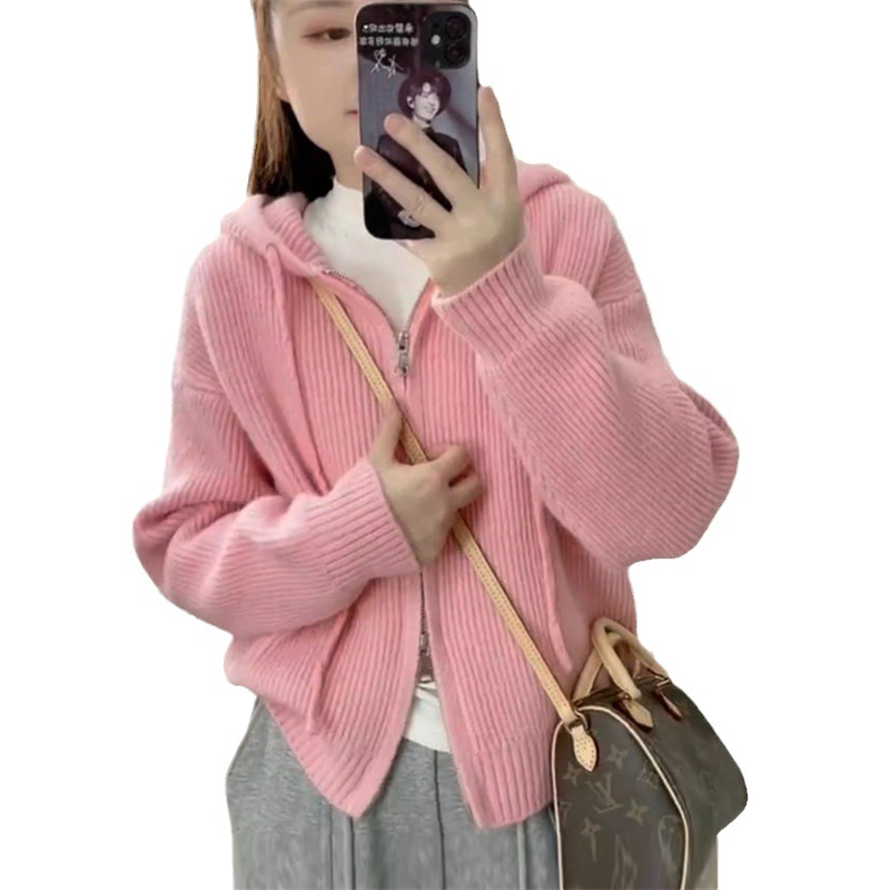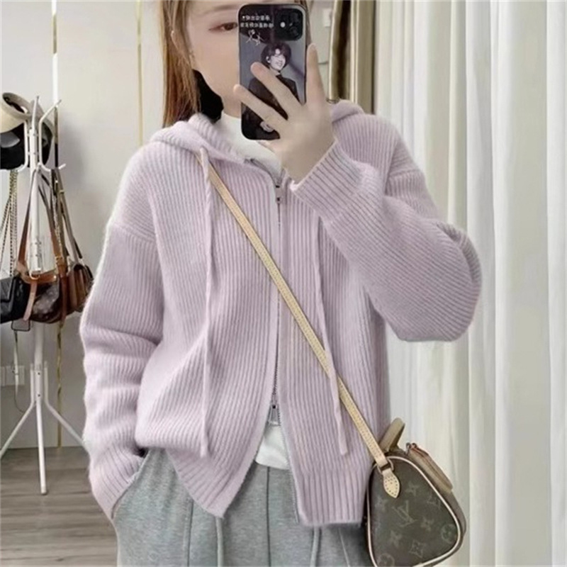 | nameOriginal | Korean Style Solid Color Hooded Sweater Outer Wear 2023 Autumn and Winter New Loose All-match Soft Waxy Knitted Cardigan Zipper Jacket |