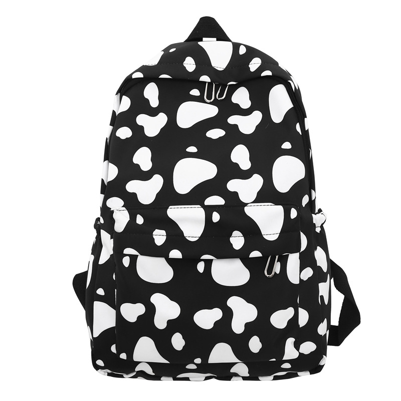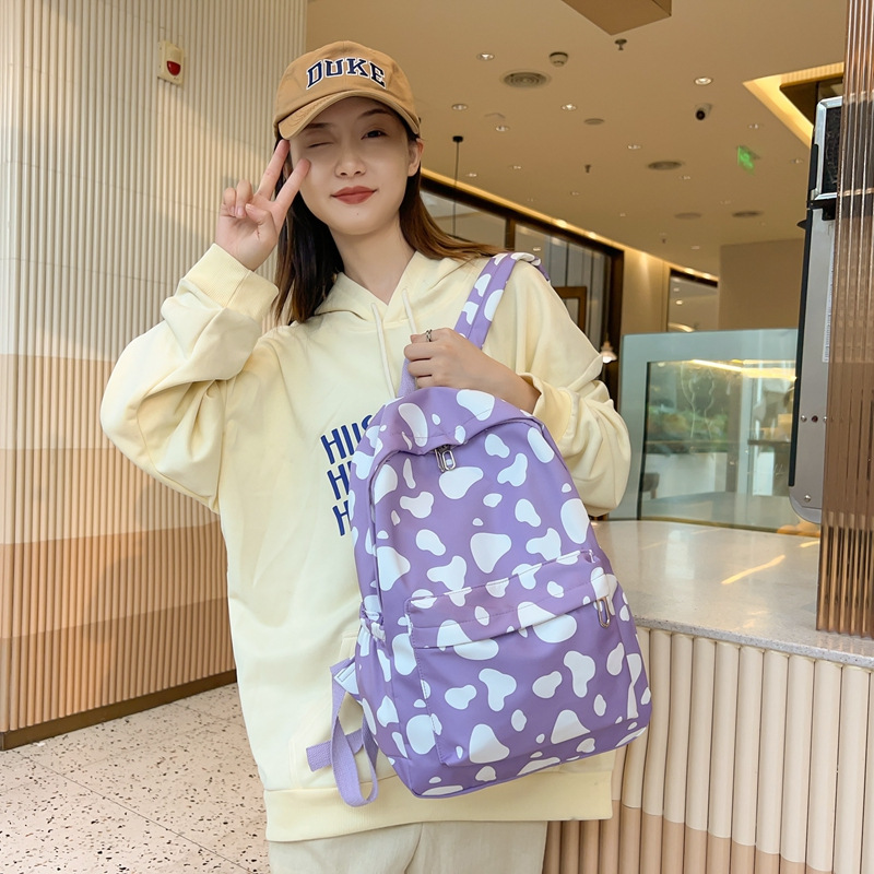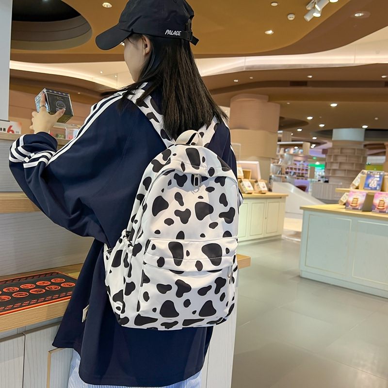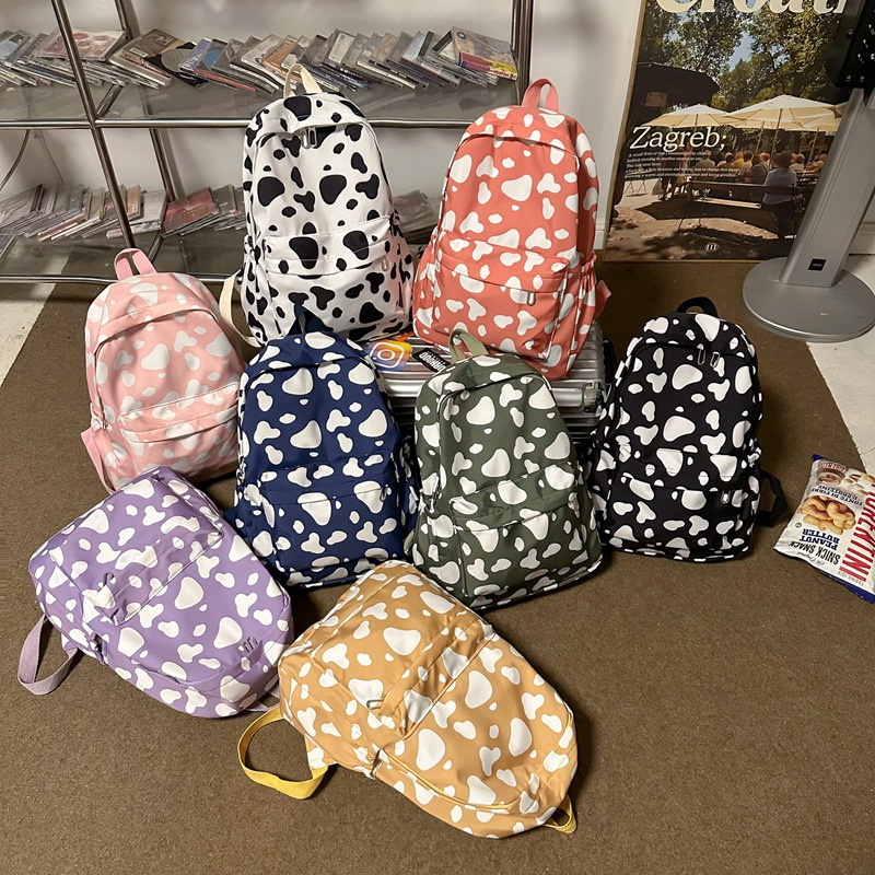 Korean Style Solid Color Simple Casual Large Capacity Backpack Dairy Cow Pattern Fashionable Girl College Student Schoolbag Travel Backpack