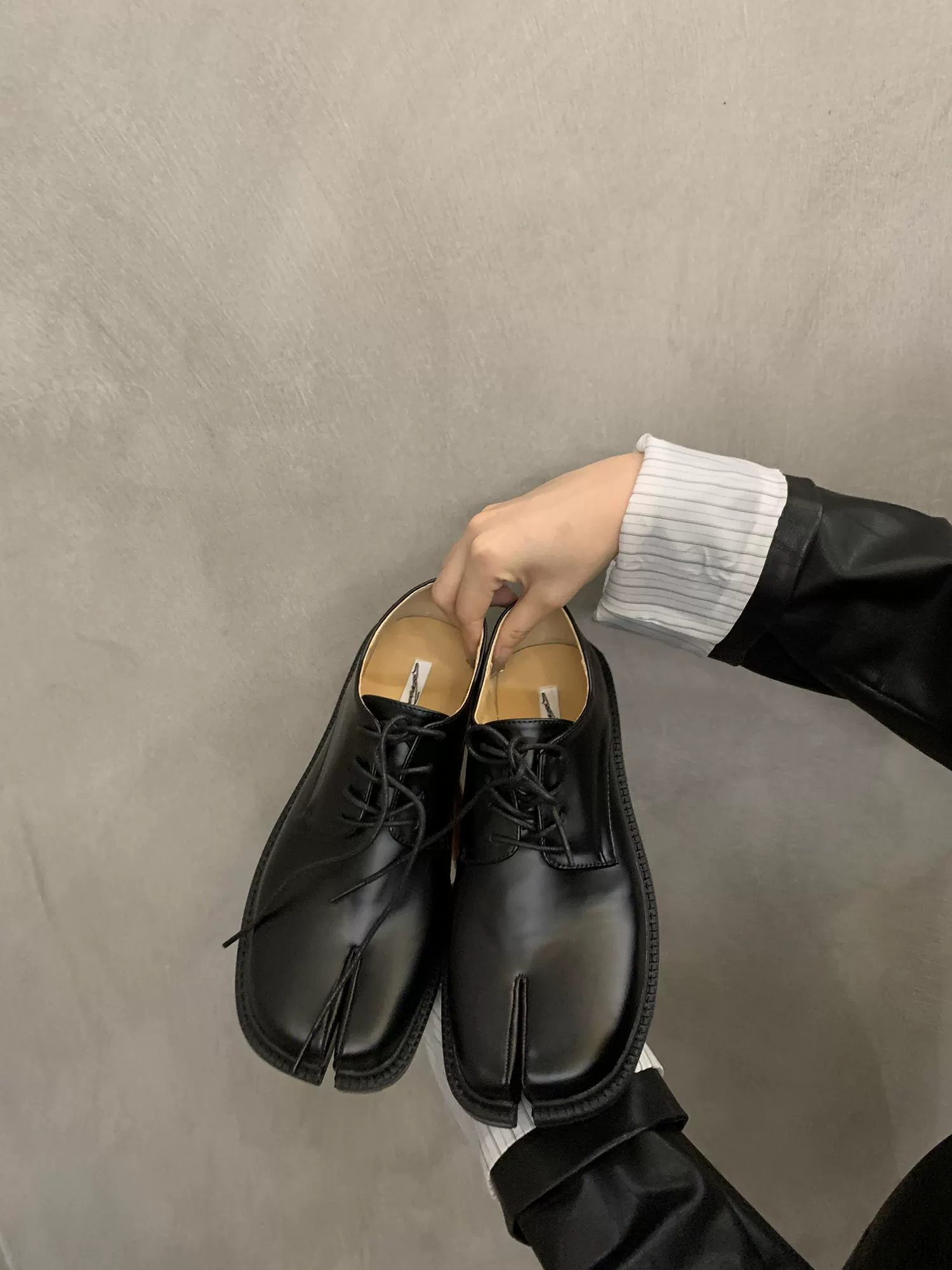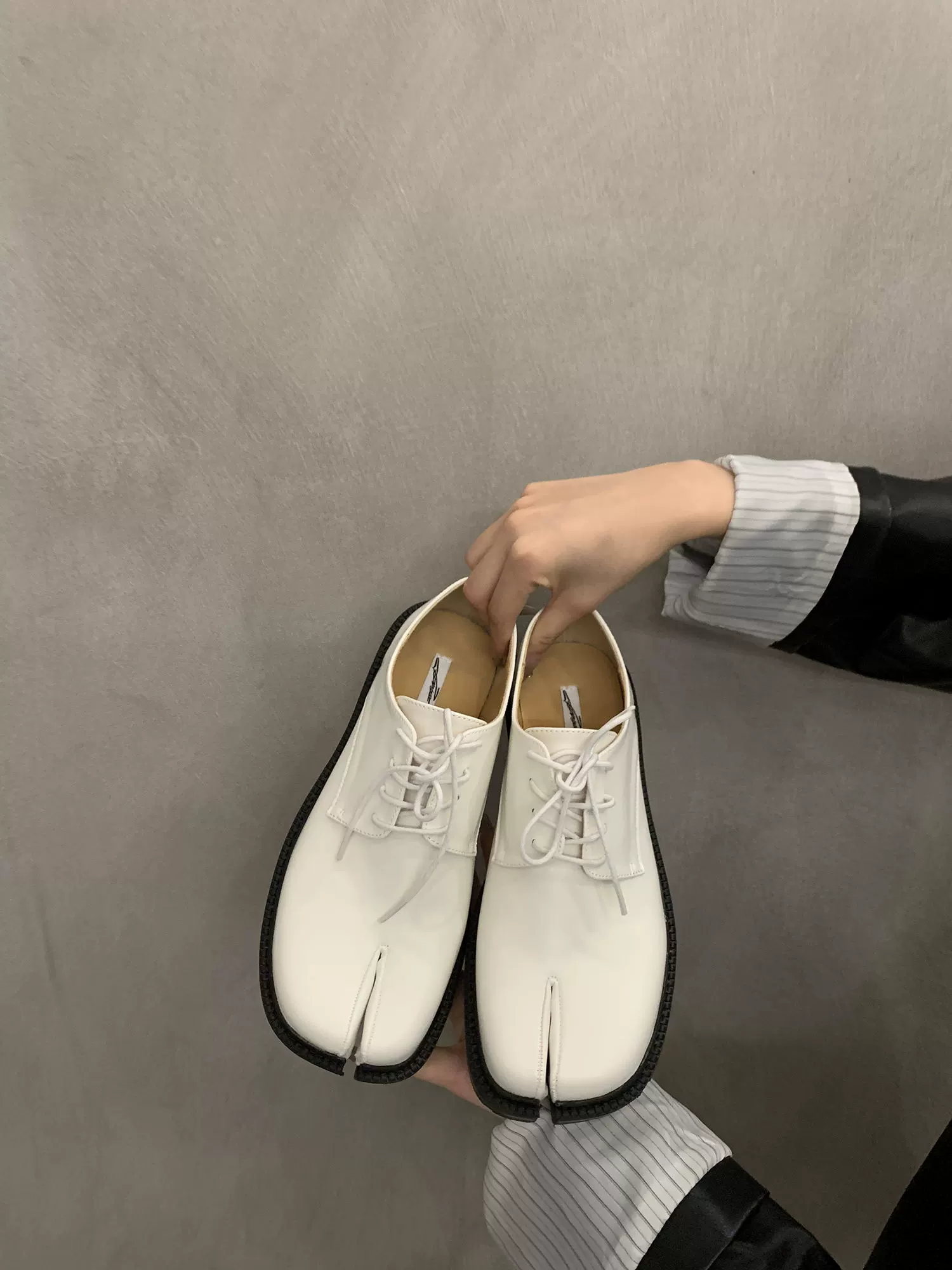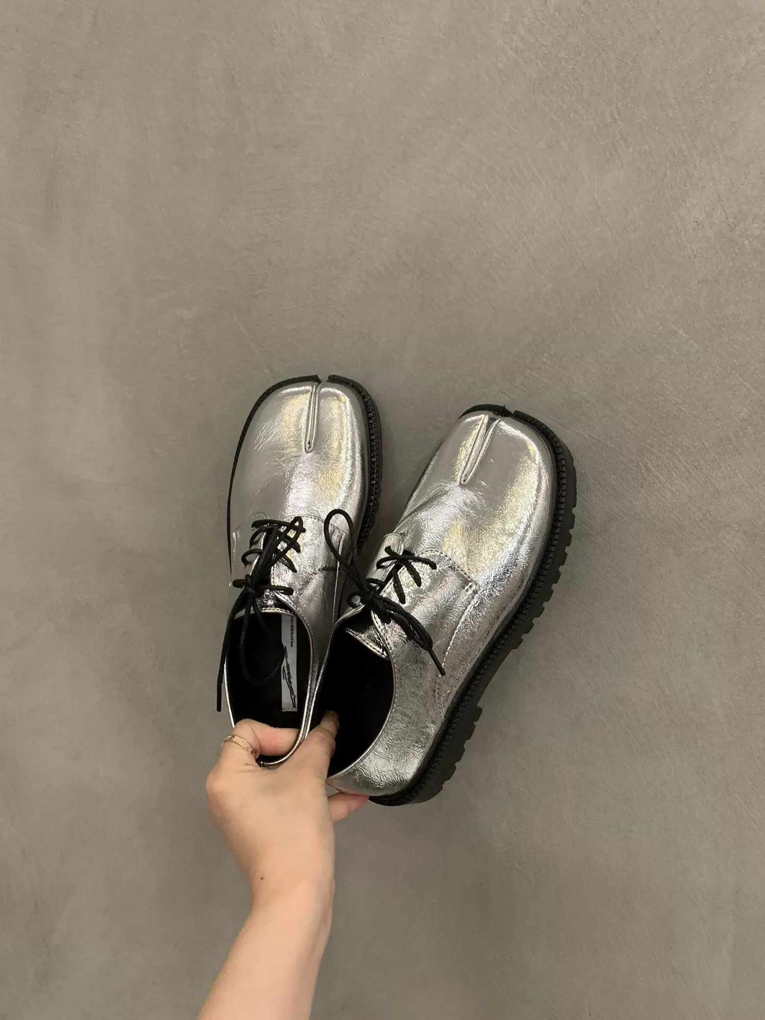 Korean style split-toe lace-up ugly silver horseshoe leather shoes