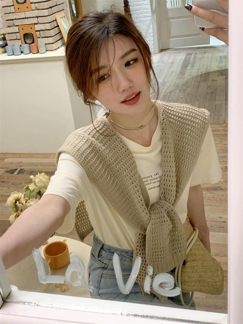 | nameOriginal | Korean style spring and summer forest beige knitted shawl autumn blouse waistcoat shawl hollow out with summer fake collar |