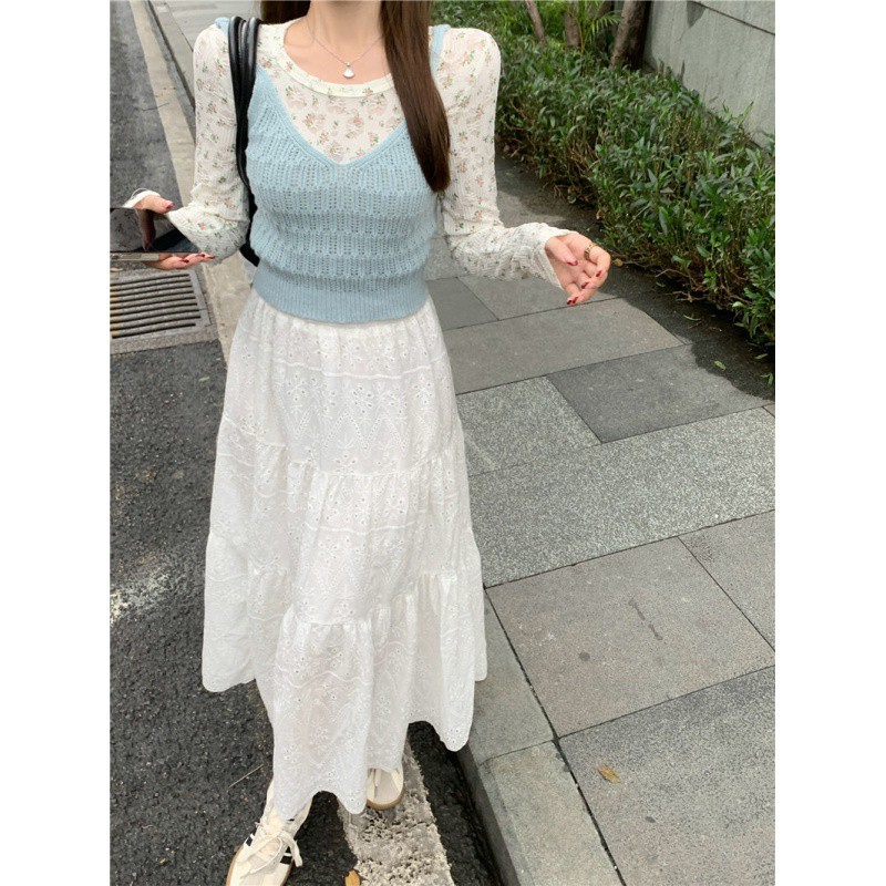 | nameOriginal | Korean-style Stacked Two-piece Suit Women's Spring Knitted Vest Sweet Long-sleeved Floral Shirt Outer-wear Sleeveless Top |