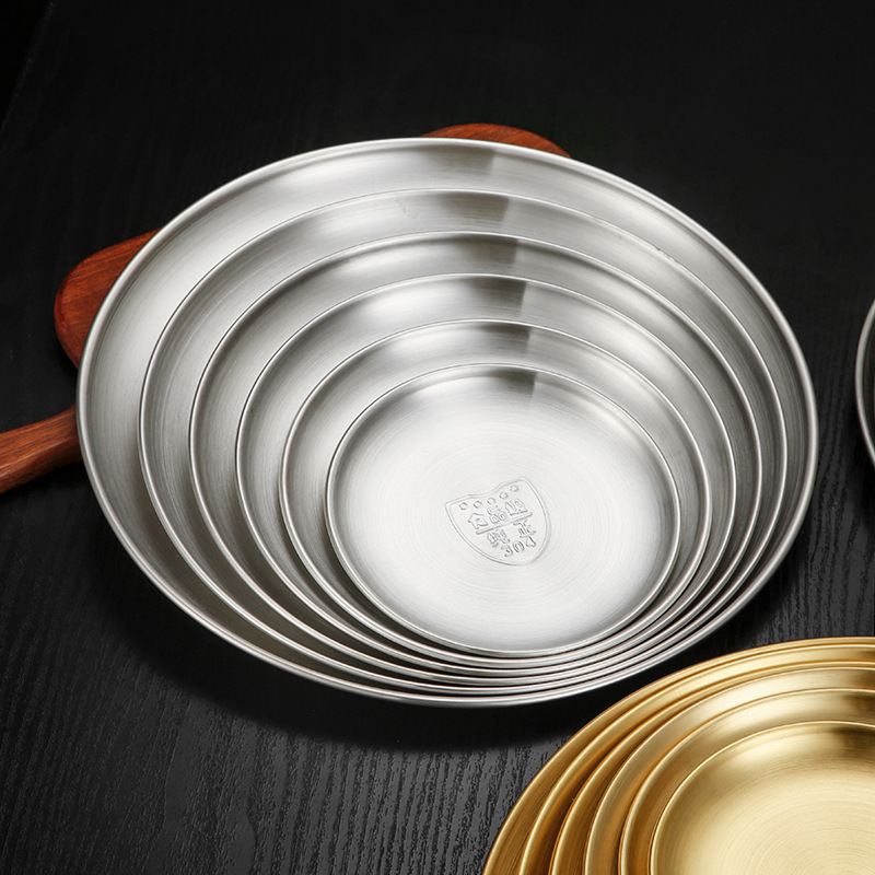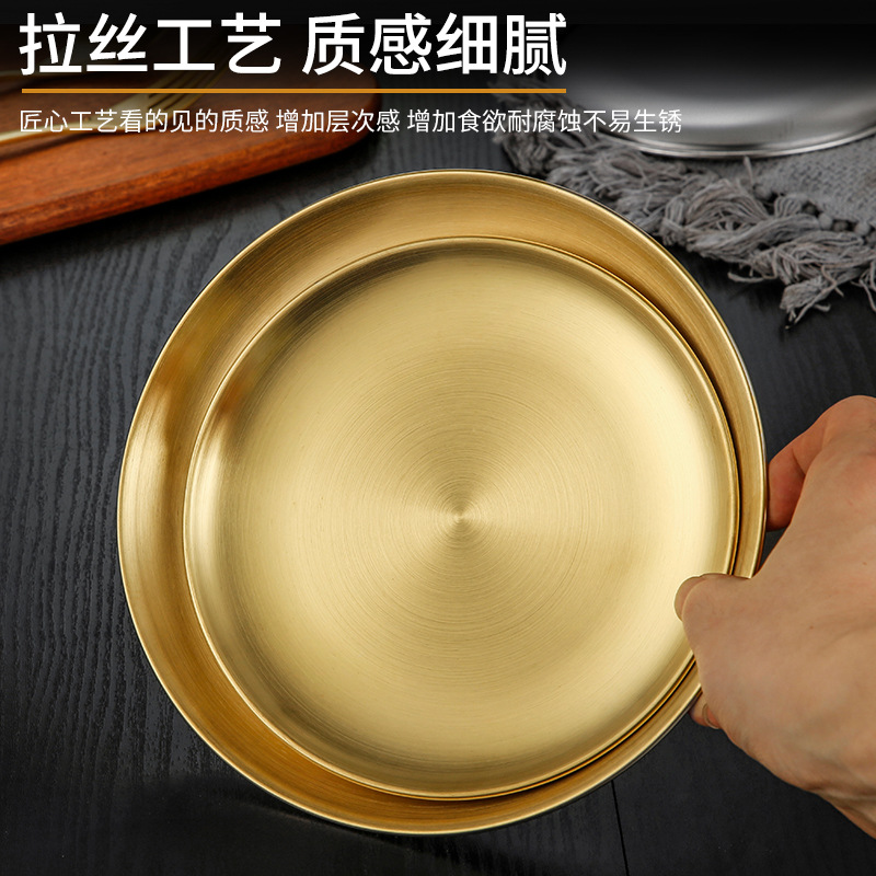 Korean-style Stainless Steel Golden Disc Cake Plate Fruit Plate Shallow Plate Dish Plate Western Plate Barbecue Plate Bone Commercial