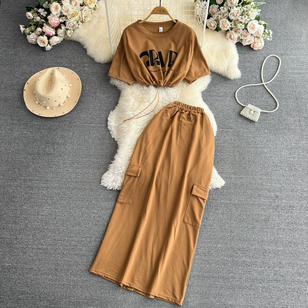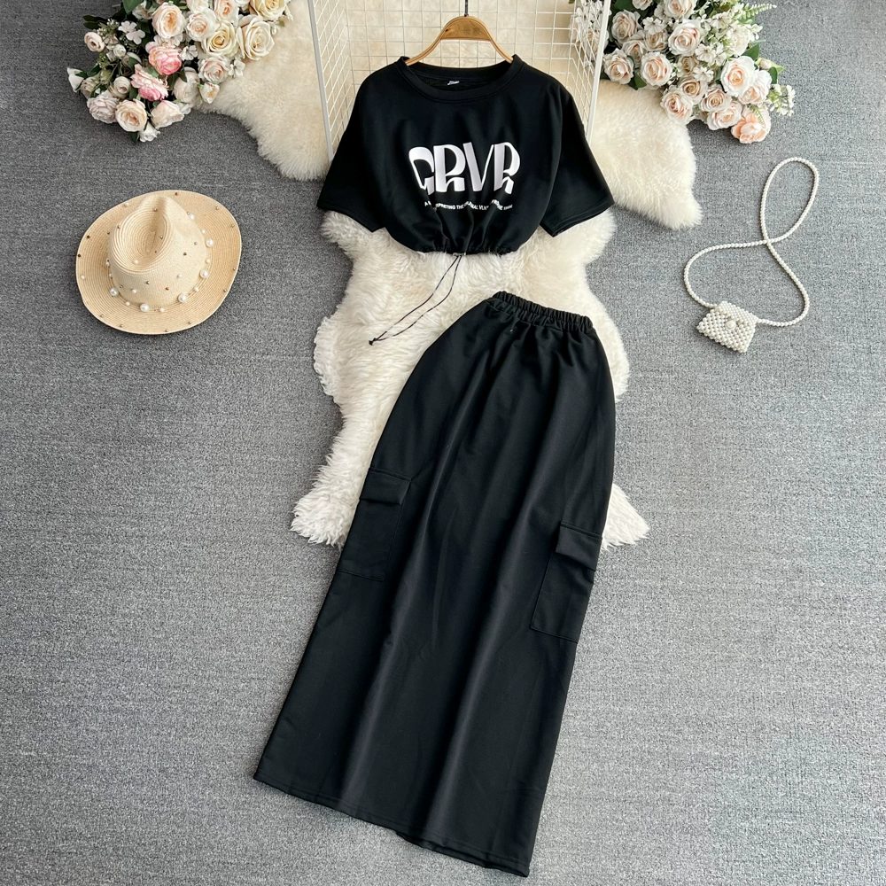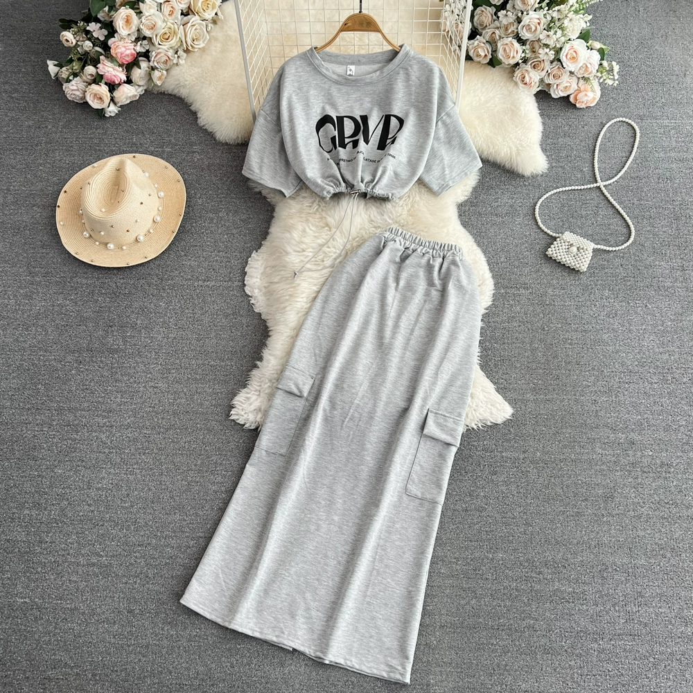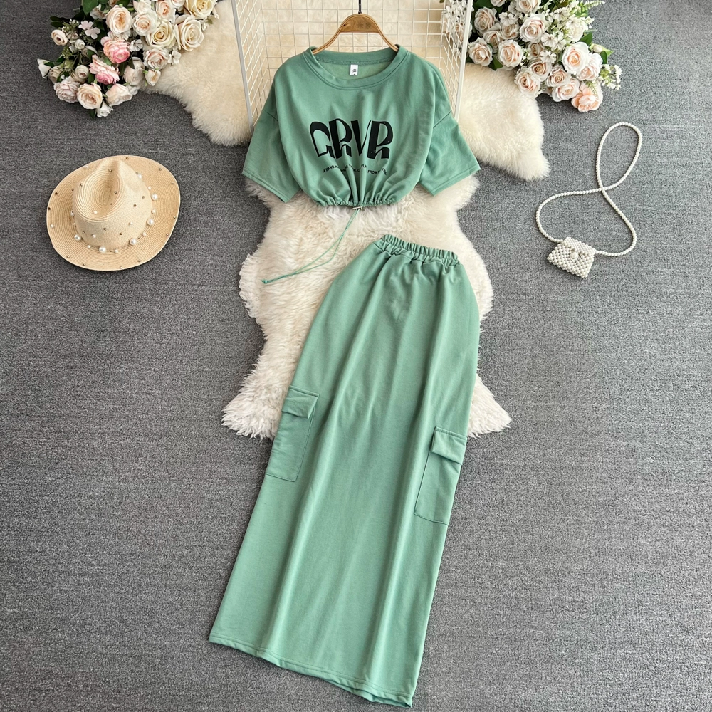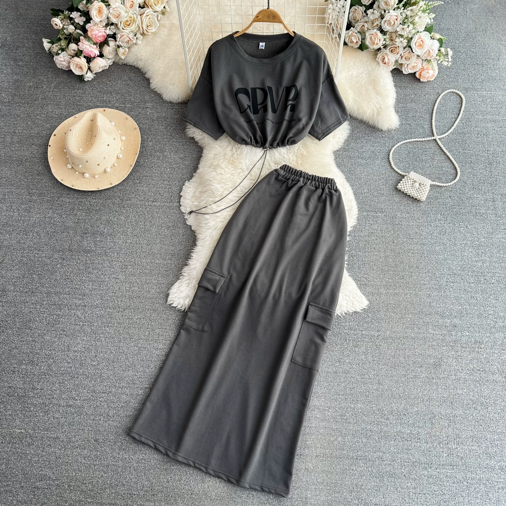 Korean style stand collar drawstring slit skirt fashion suit