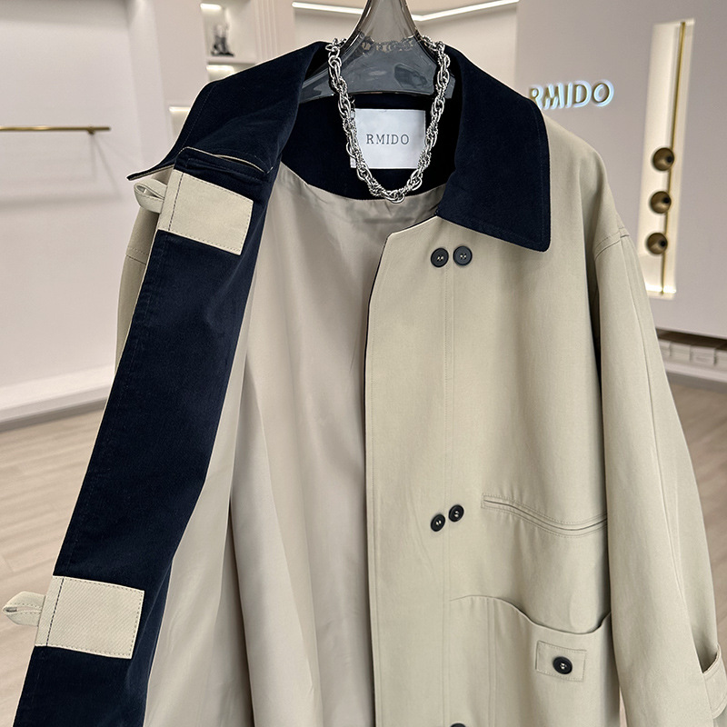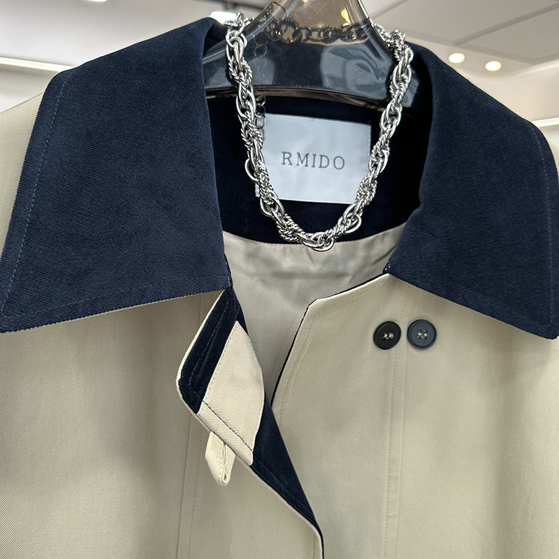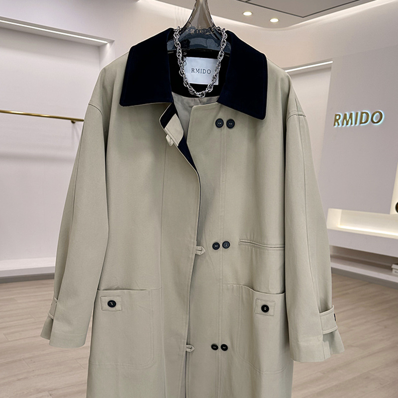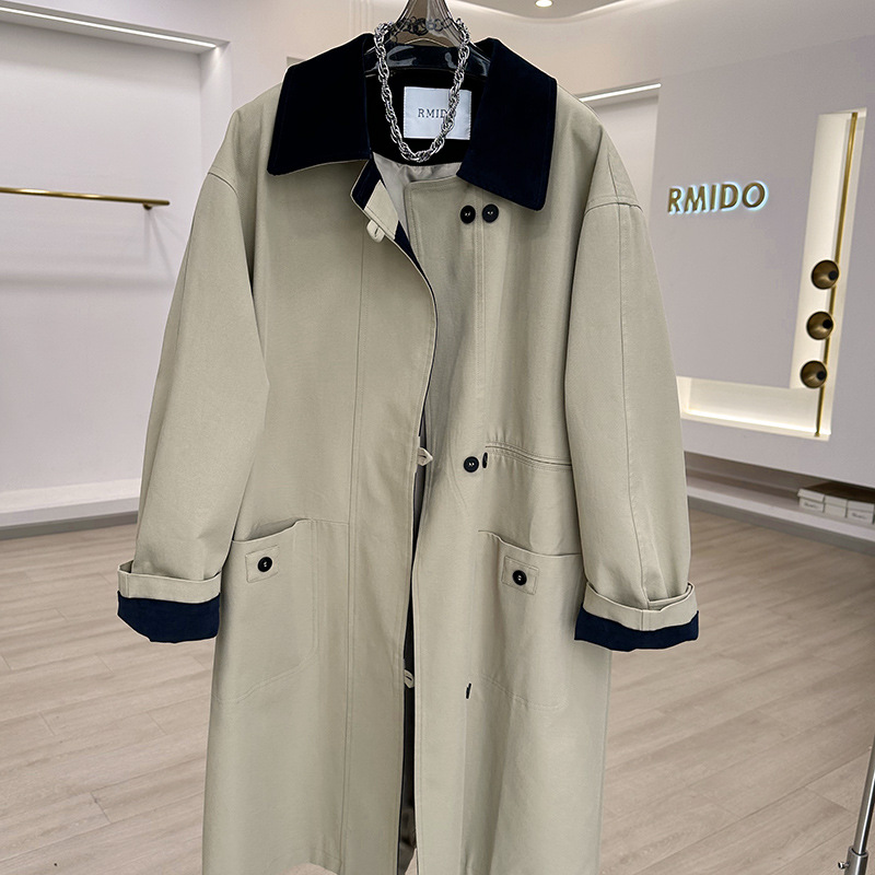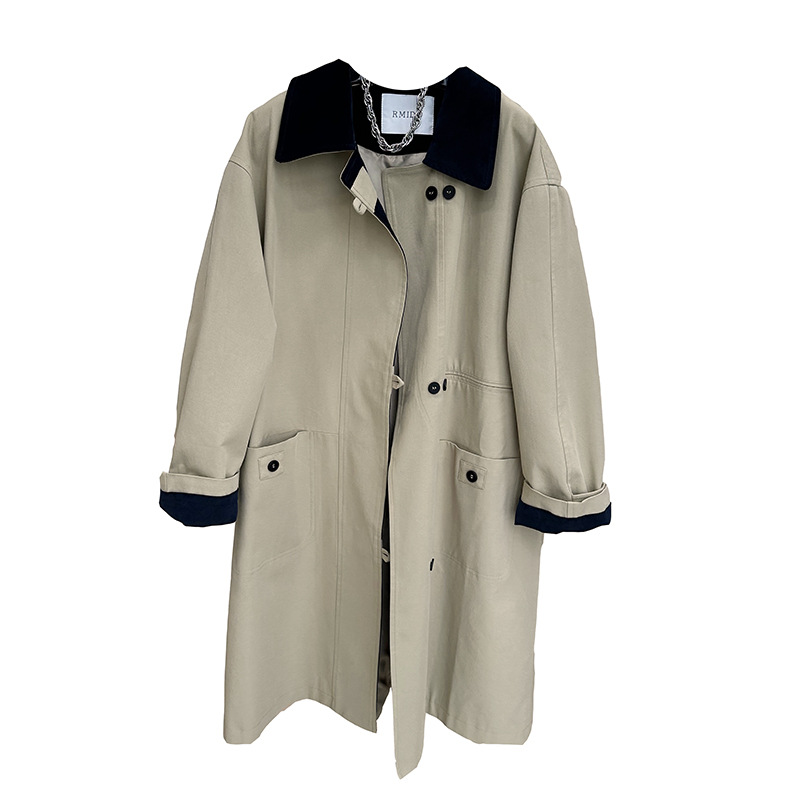 | nameOriginal | Korean style stitching contrast color windbreaker Women's Mid-length 2024 spring new casual loose slimming small popular coat |
